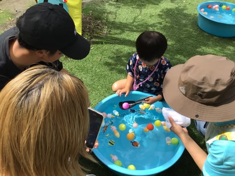 - 北海道の短い夏を満喫する水あそび遠足では、近隣の水あそび施設まで園バスでお出かけします。