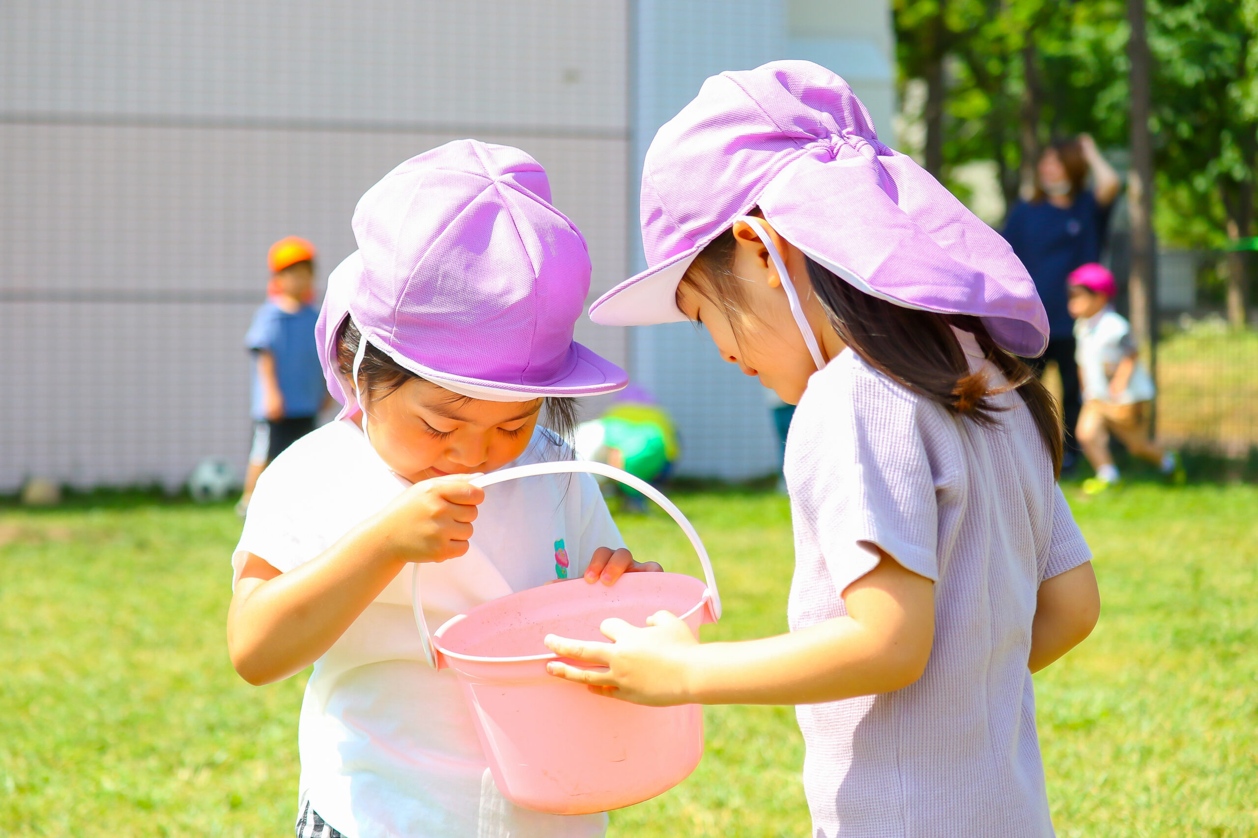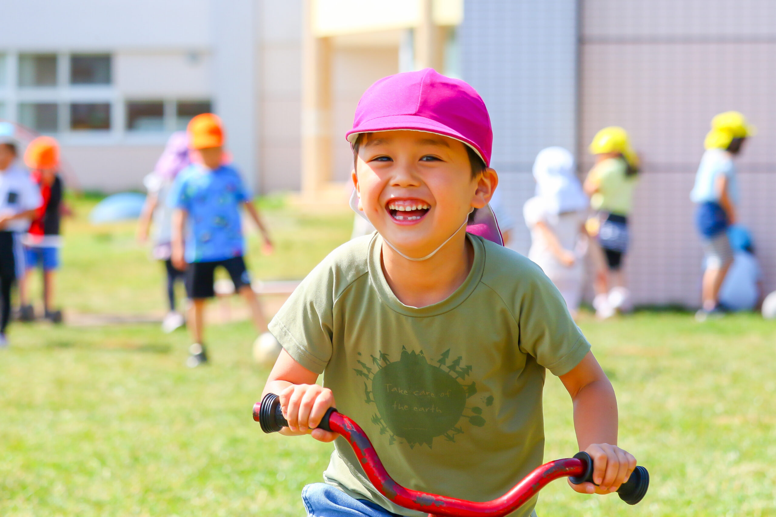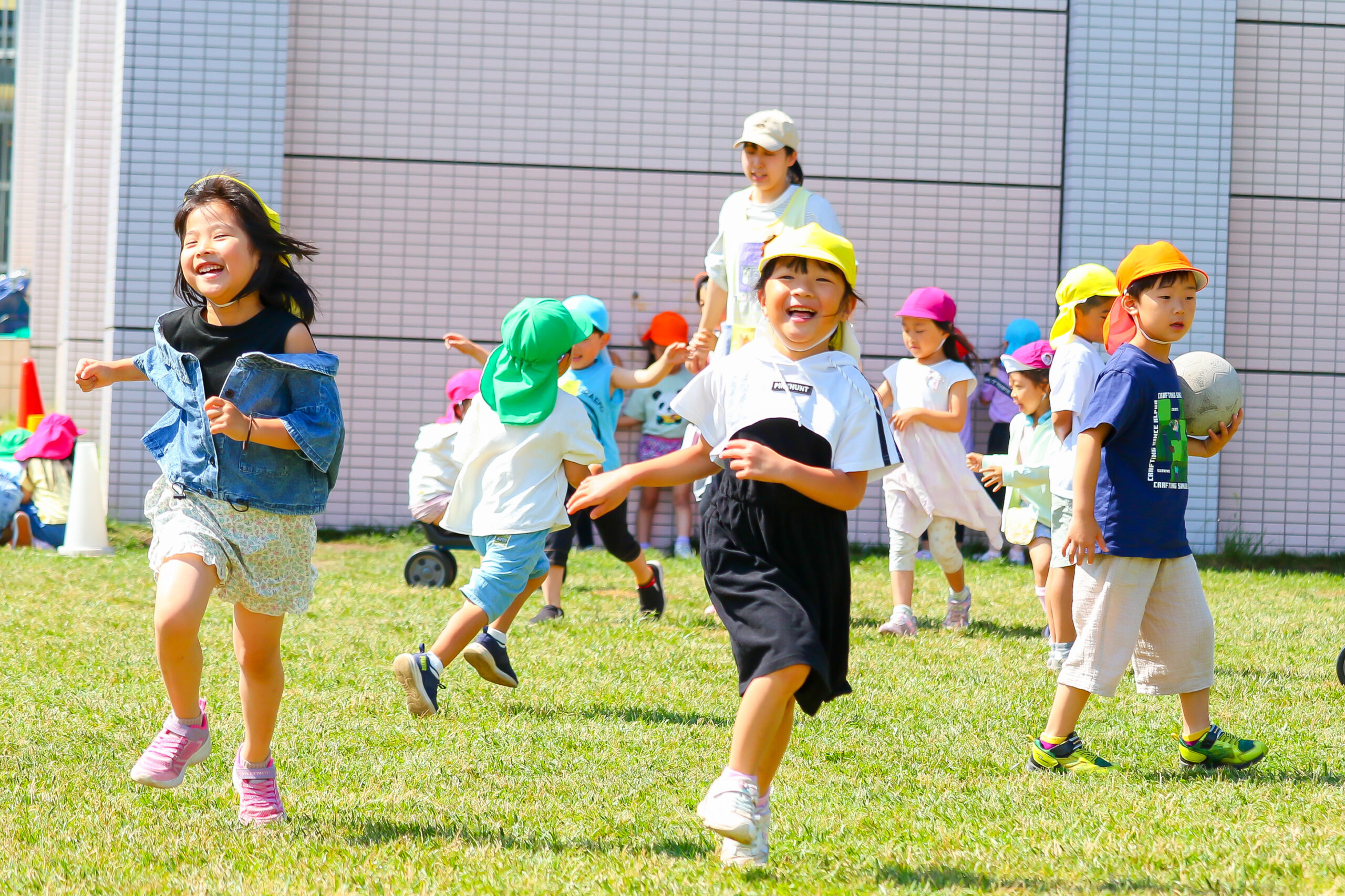 大型遊具も設置された広い園庭では、鬼ごっこやかけっこ、ボールあそびなど、それぞれ好きなあそびに夢中になりながら思う存分身体を動かすことができます。午後の預かり保育の時間にも外あそびを取り入れ、夏の水あそびも大人気です。