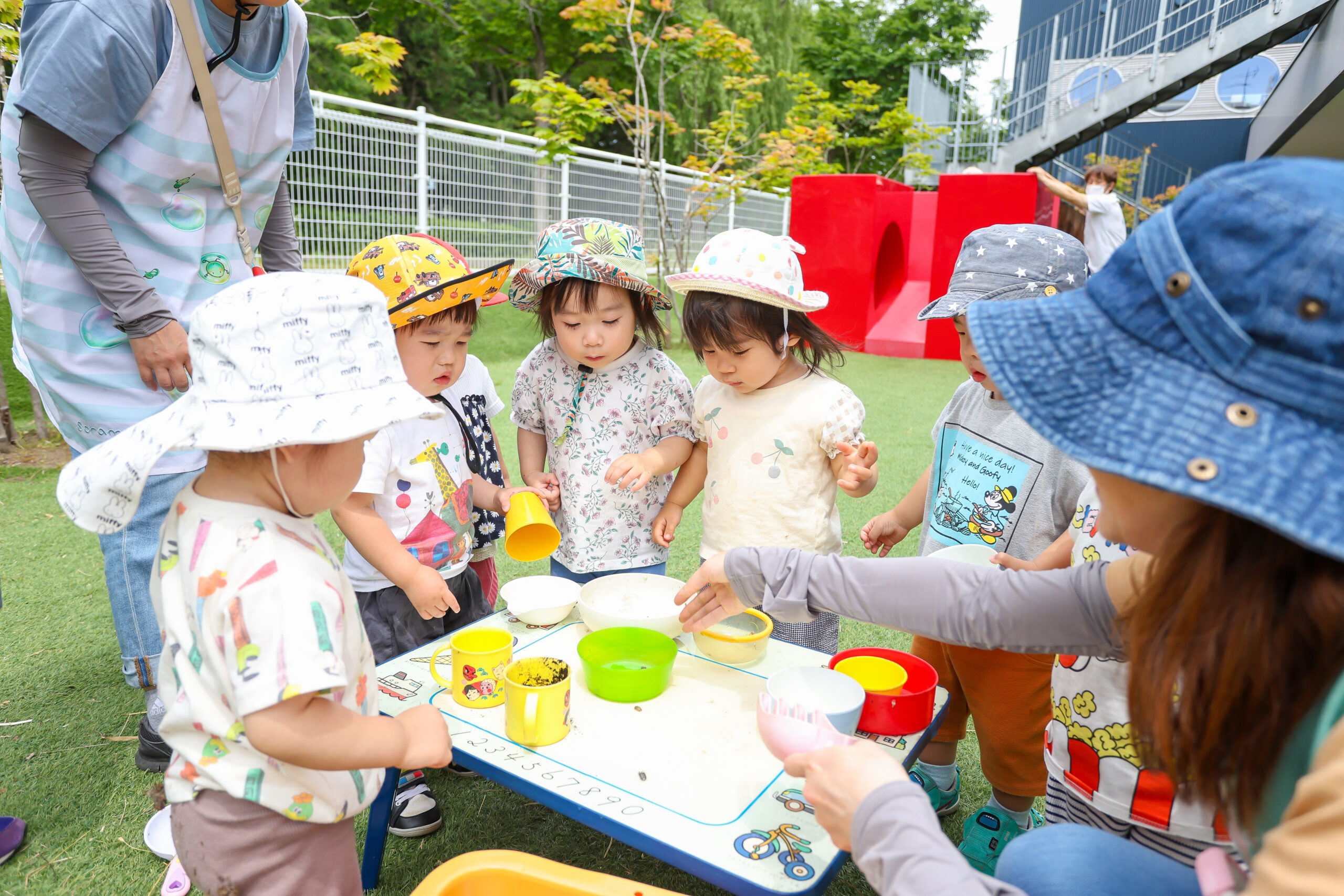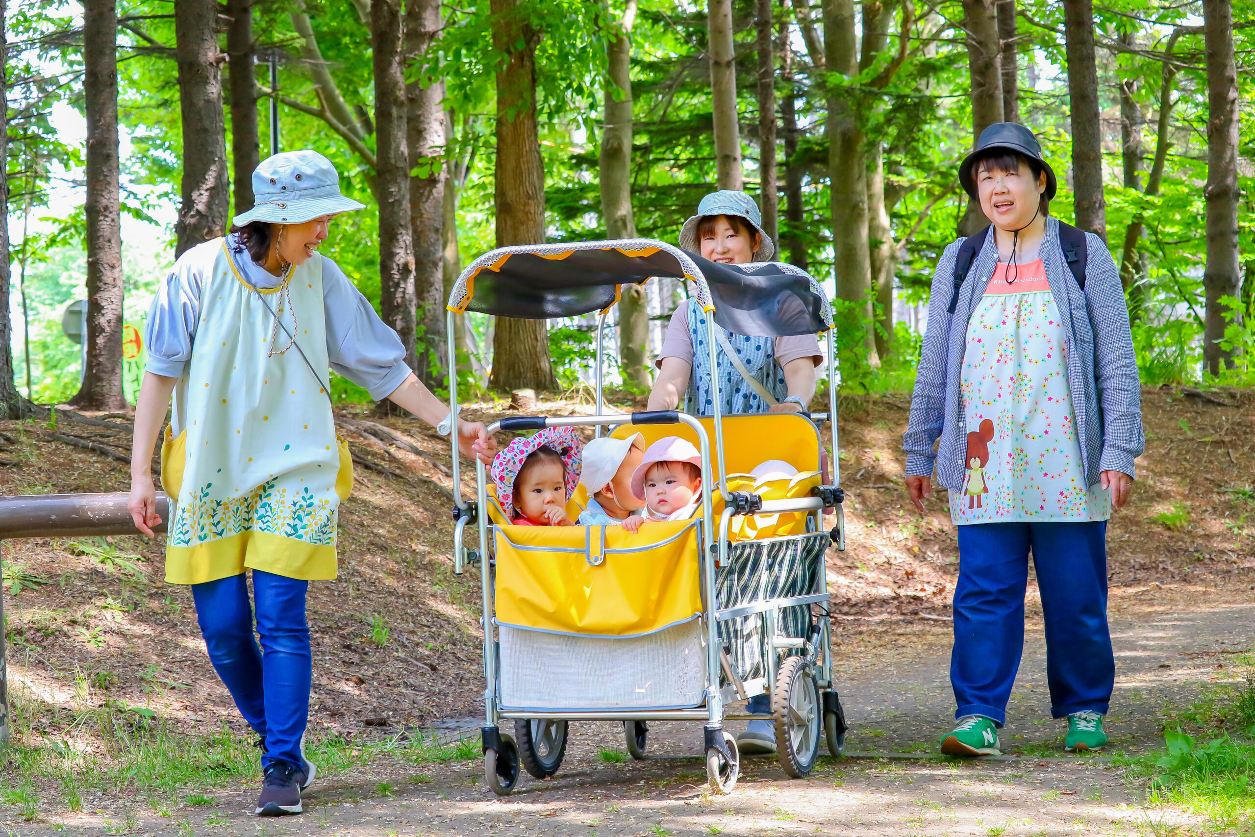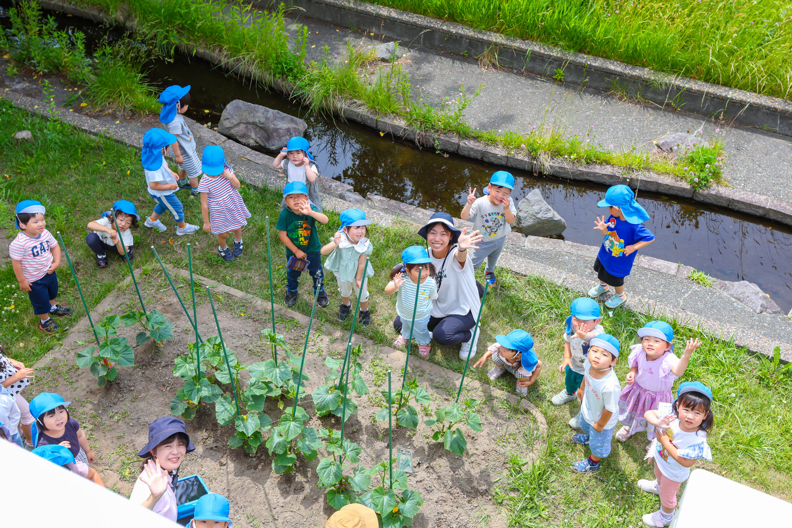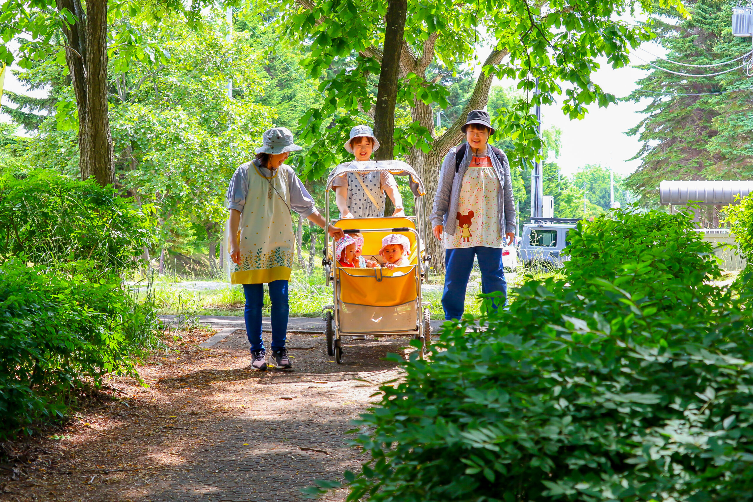 徒歩圏内に、あいの里北公園・まんぼう公園・めだか公園・たつのこ公園などたくさんの公園があります。乳児も幼児も散歩に出る機会が多く、自然豊かな環境と季節の変化を身近に感じながら健やかな心を育みます。