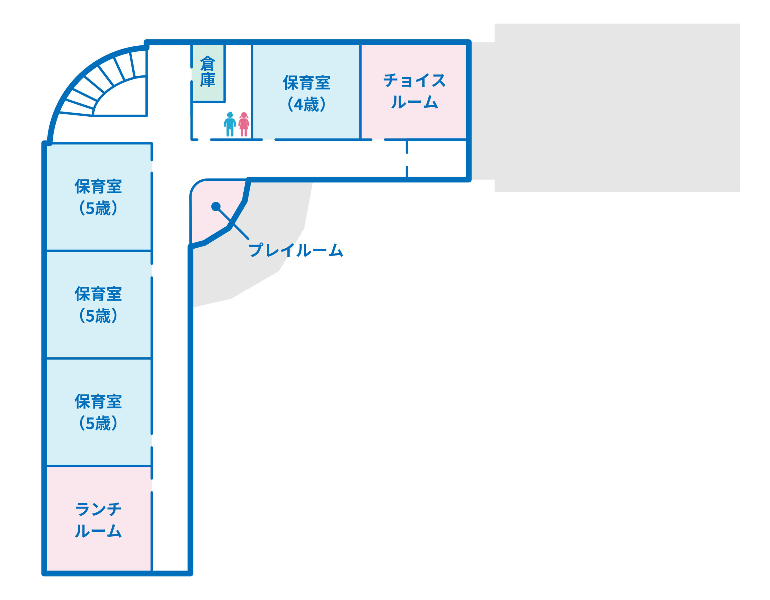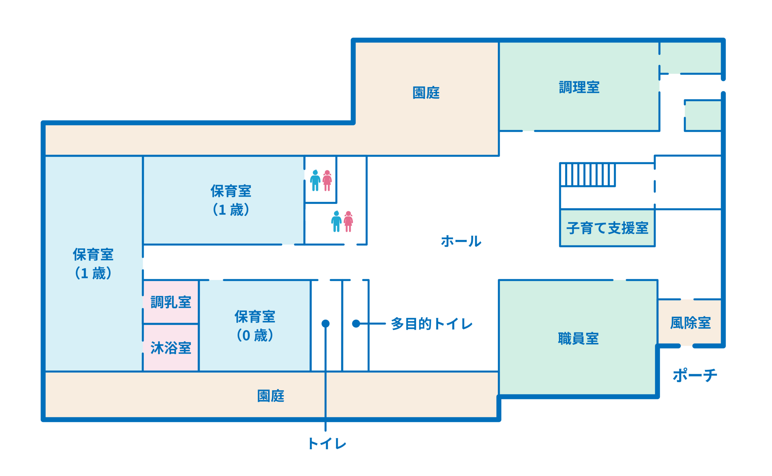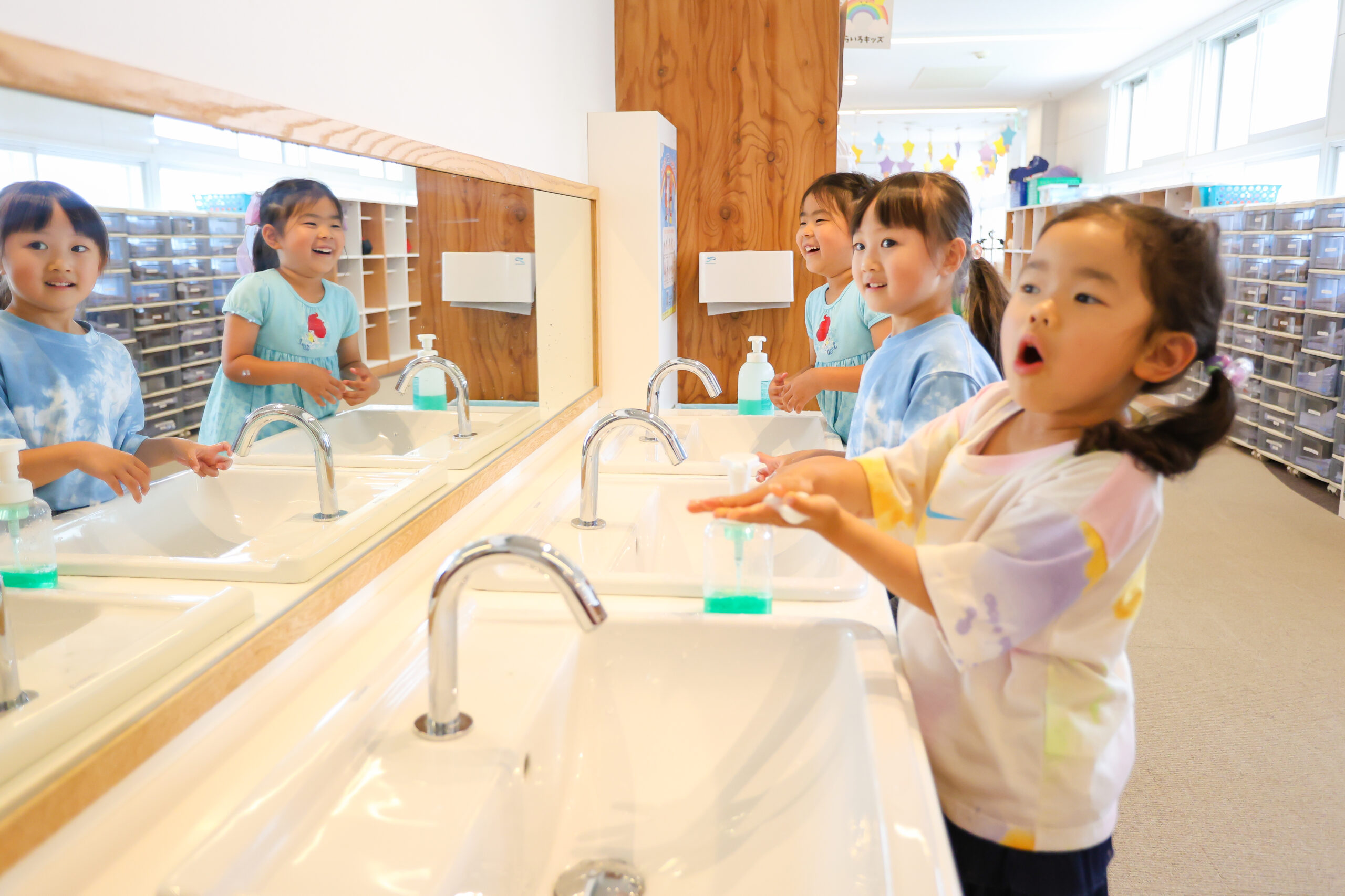 乳児・幼児の園舎を分け、それぞれの成長段階に合わせた環境を整えます。乳児は、園生活に慣れて、職員と愛着関係を築きながら少しずつ行動範囲を広げ、幼児は、自分達がやりたいことを見つけながら主体的な活動に取り組みます。