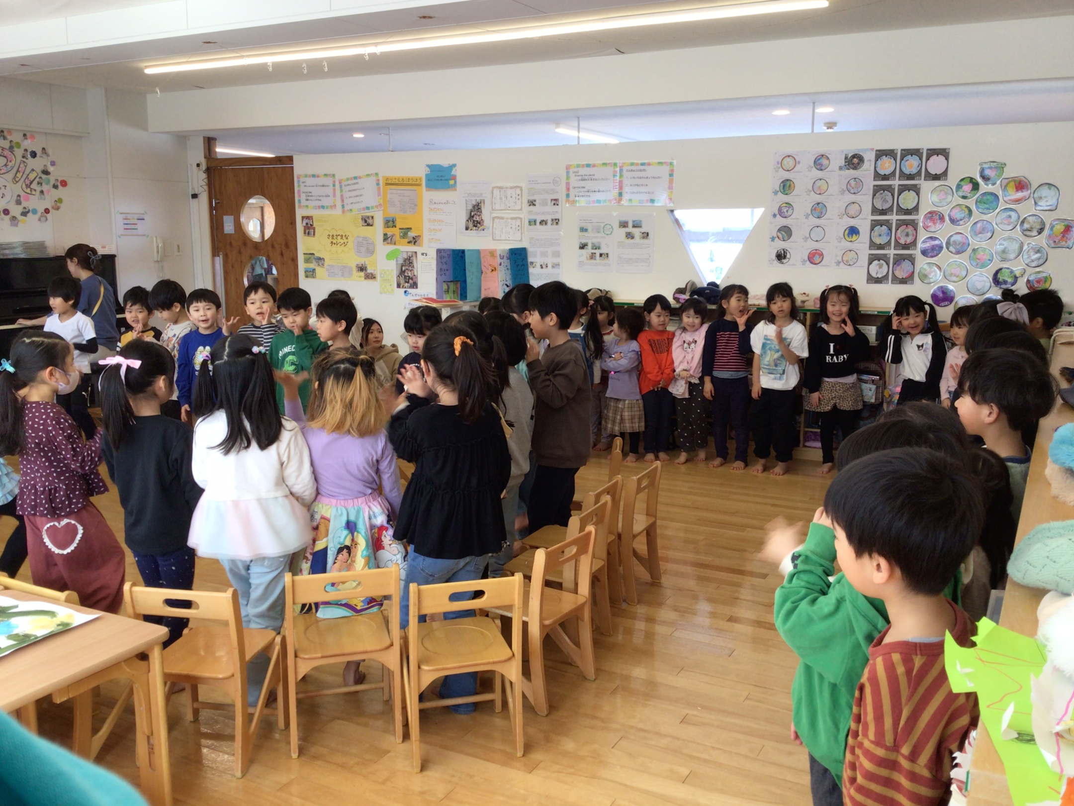 「実際に5歳児クラスのお部屋へ行き、朝のサークルタイムをリサーチ!」しました。