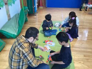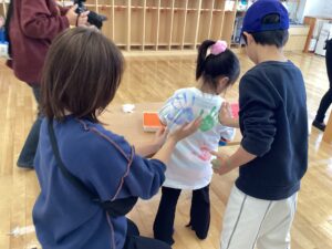 本日は2回目の親子で楽しむ日。各クラスいつもの保育の様子を親子で一緒に体験できていました。