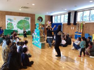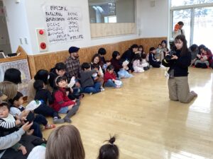 最後はホールに集まってみんなでわらべ歌を楽しみました。