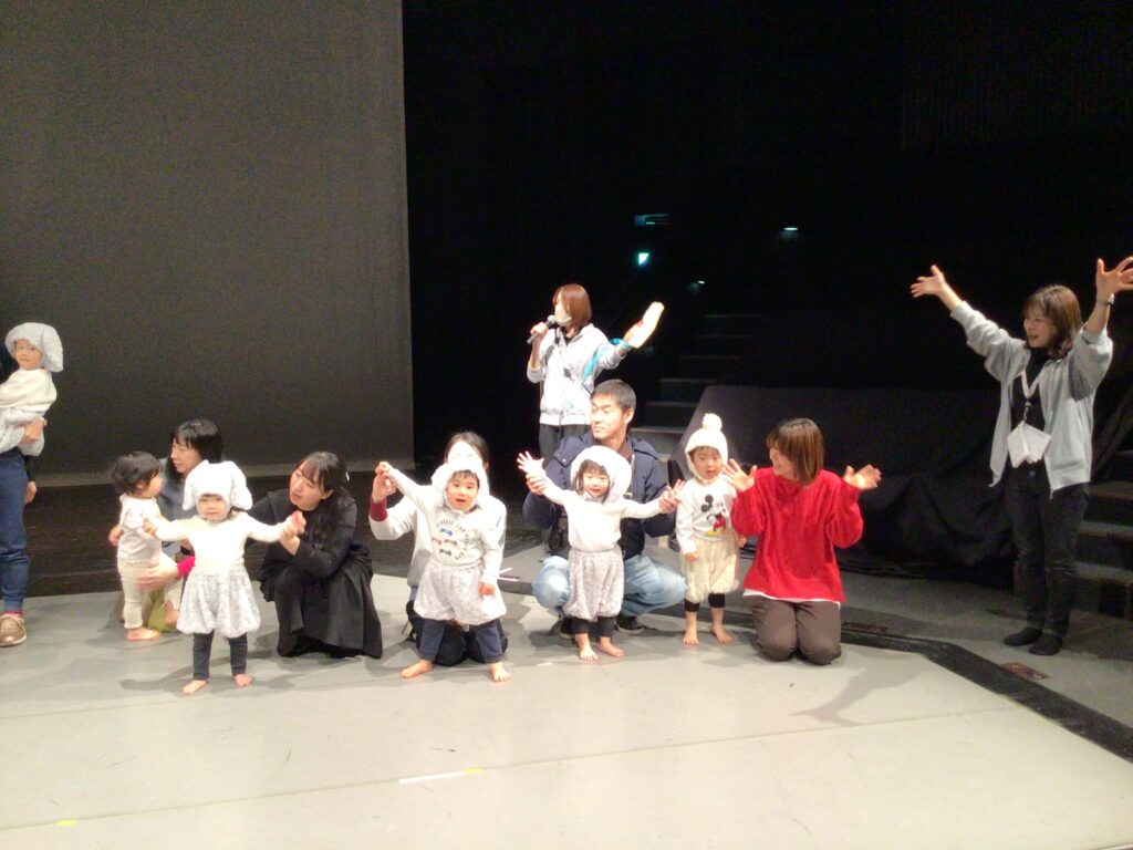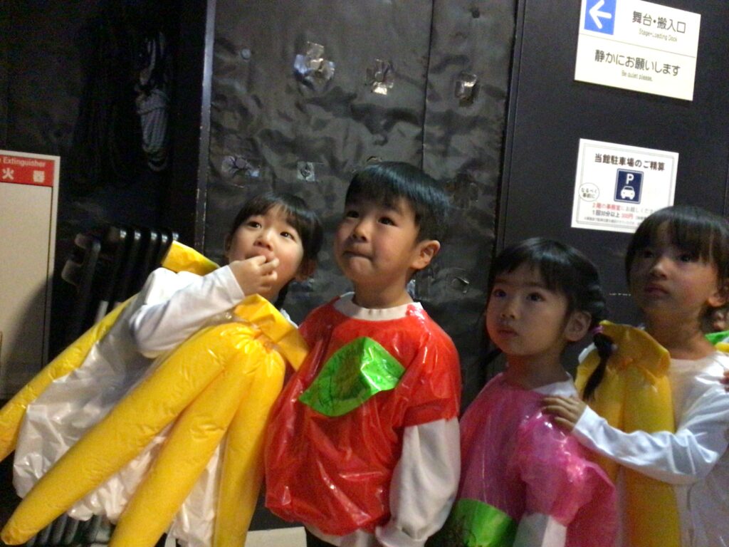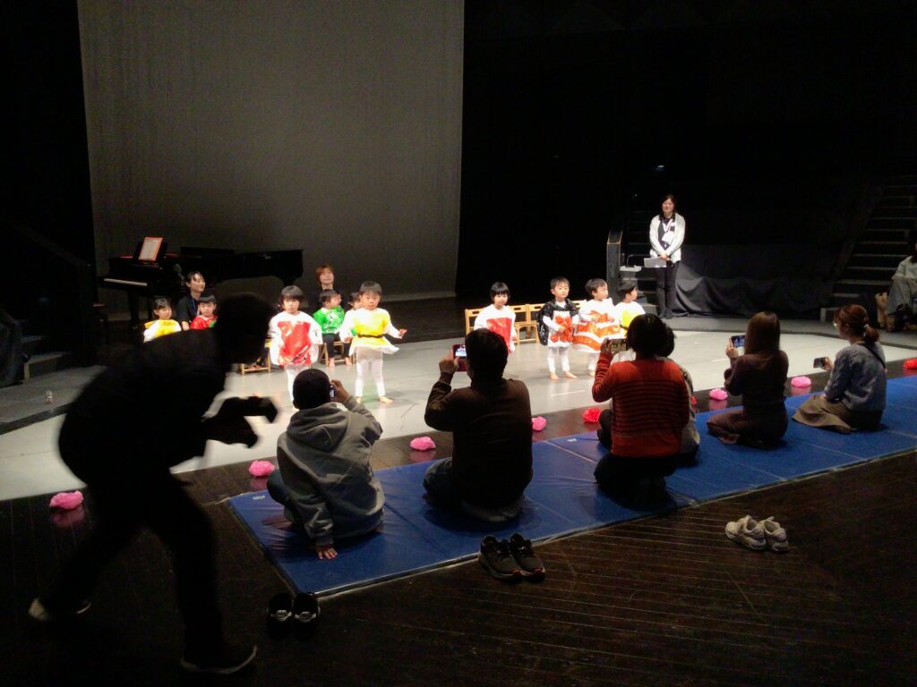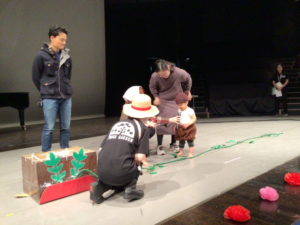 舞台に向かう前に、先生に絵本を読んでもらい、