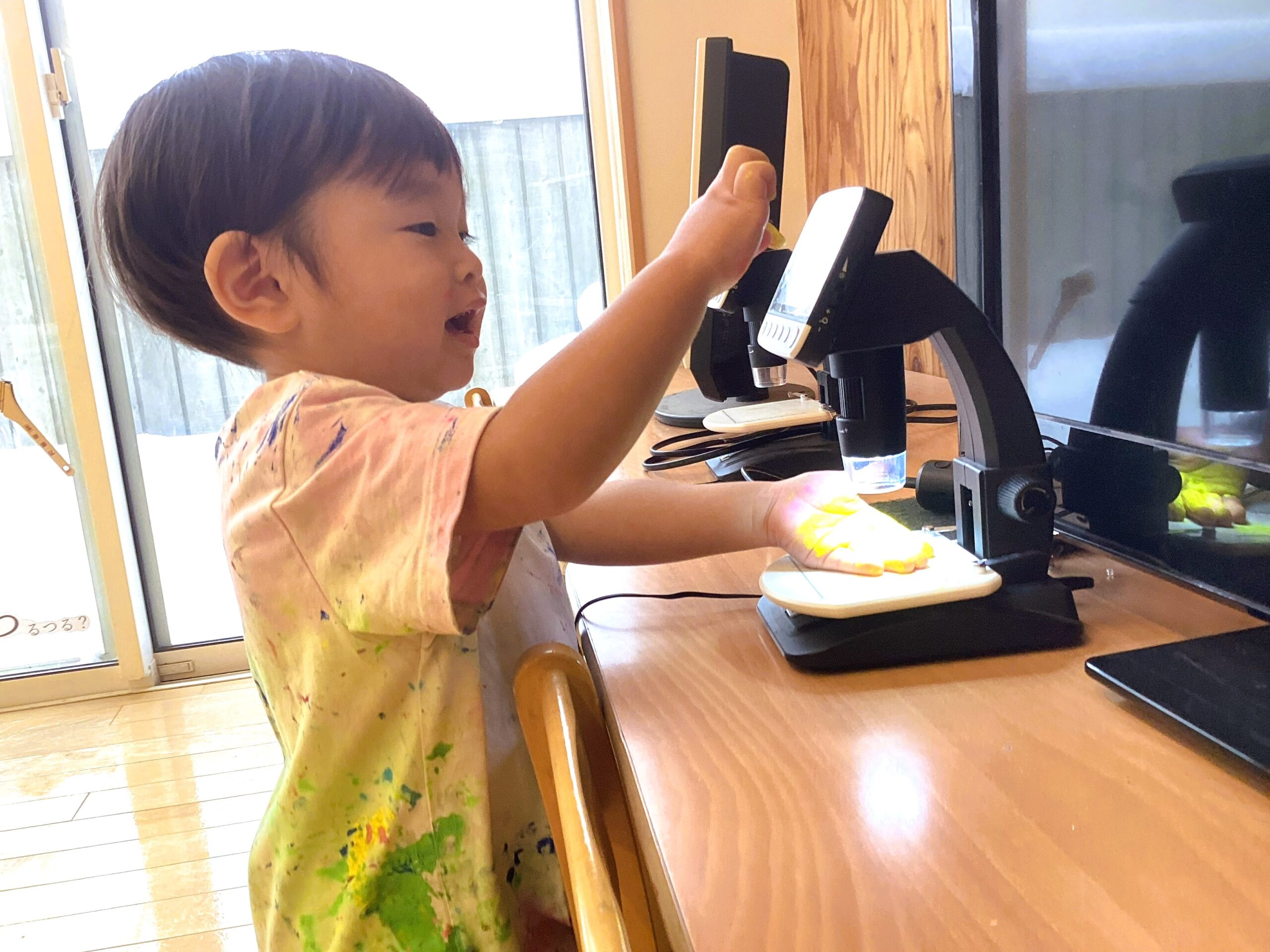 アトリエでは光や音や造形活動を通して、子どもたちの気付きを大切にする活動を実施。子どもの育ちを0~5歳の緩やかな育ちを意識し、子どもたち自身が他者を意識できるよう異年齢の関りを多く持つことや、プロジェクト保育や小グループでの探求活動を行います。