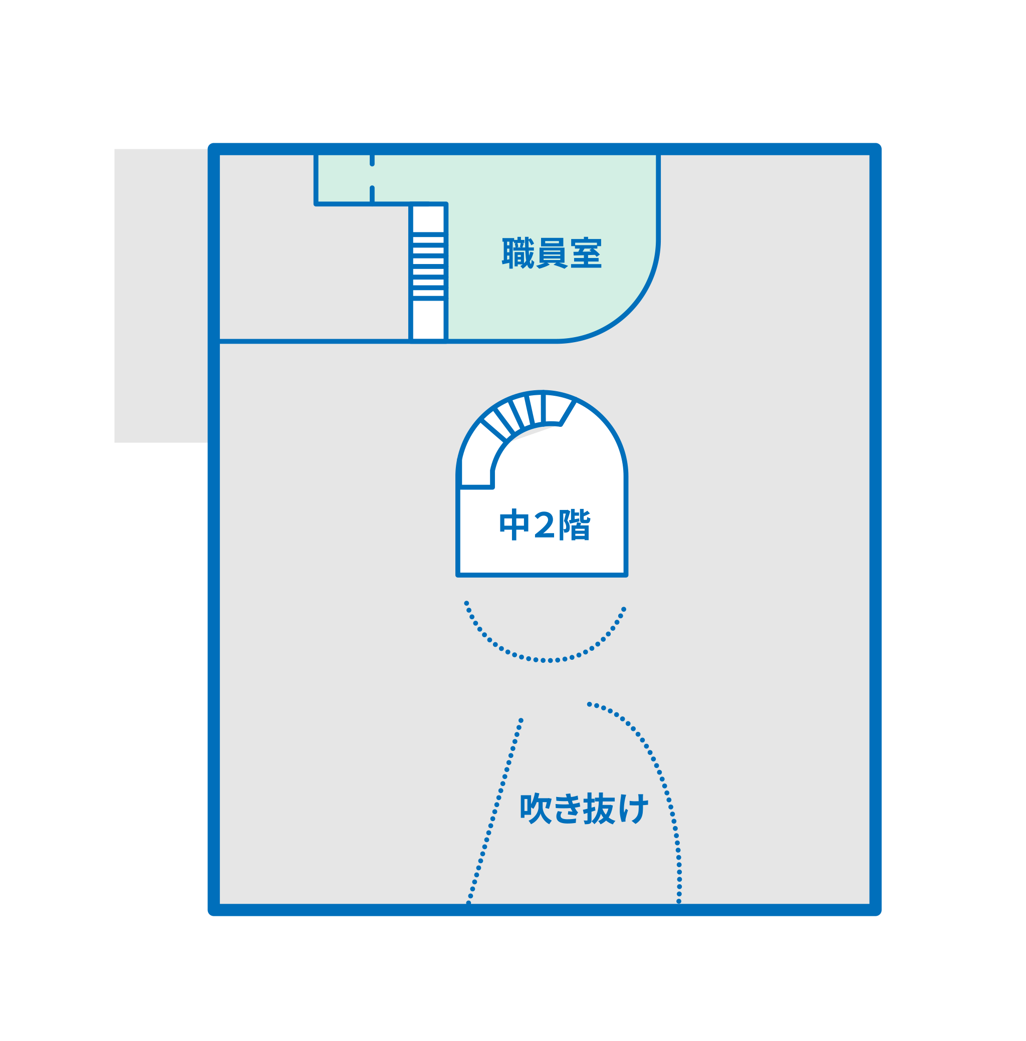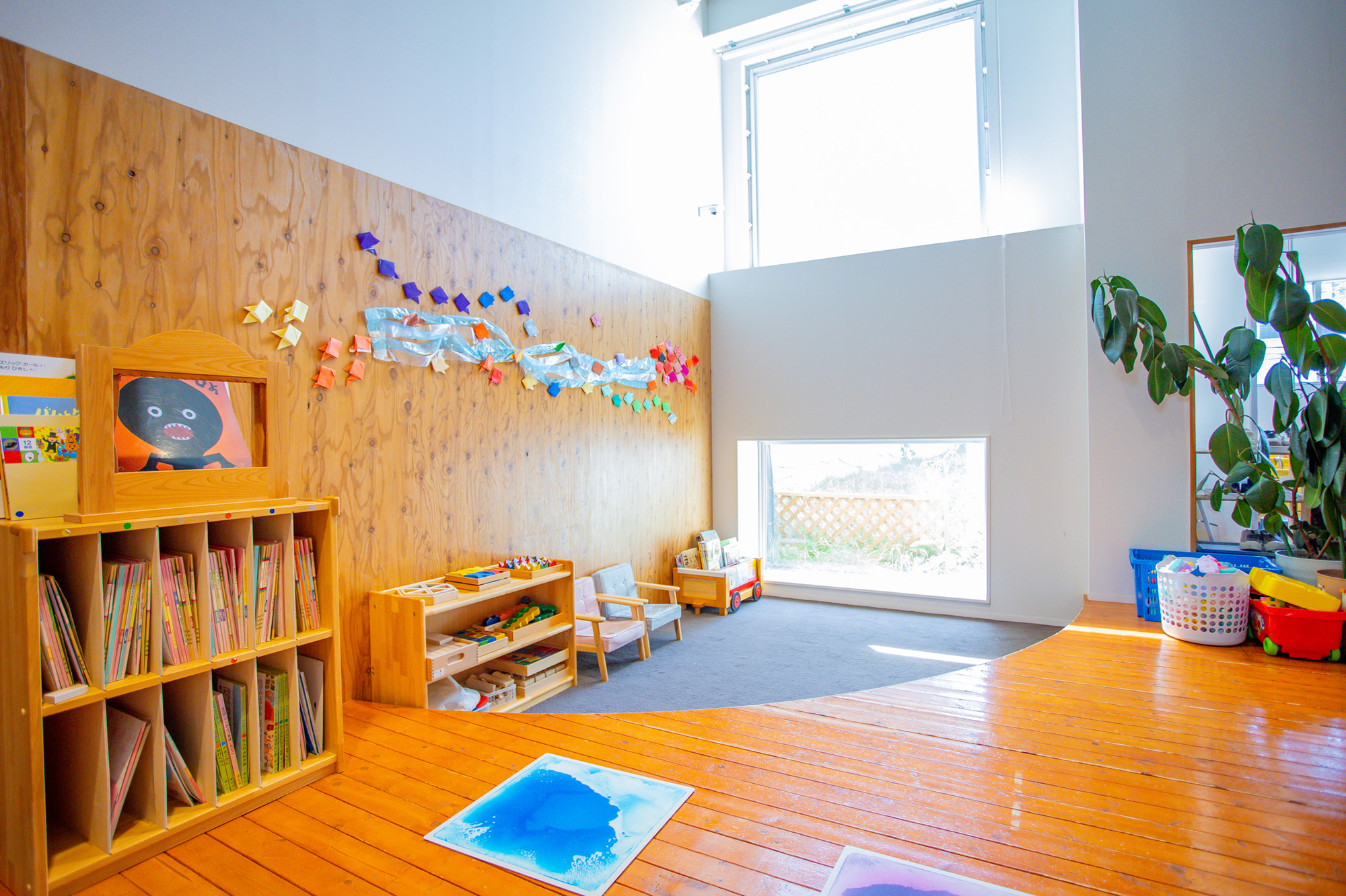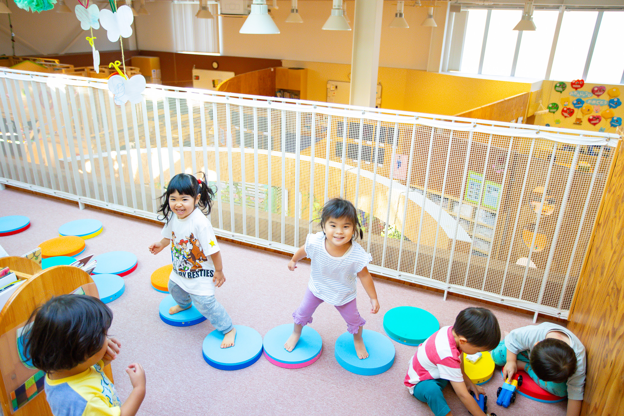- ④園全体を見渡せる中2階の多目的スペース