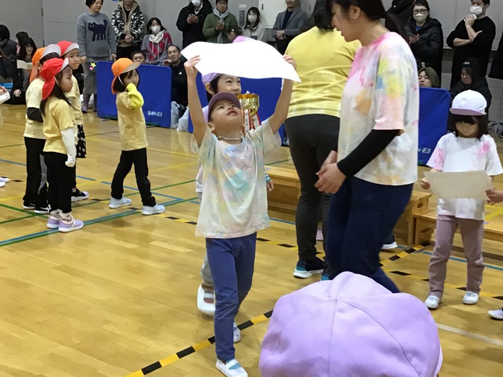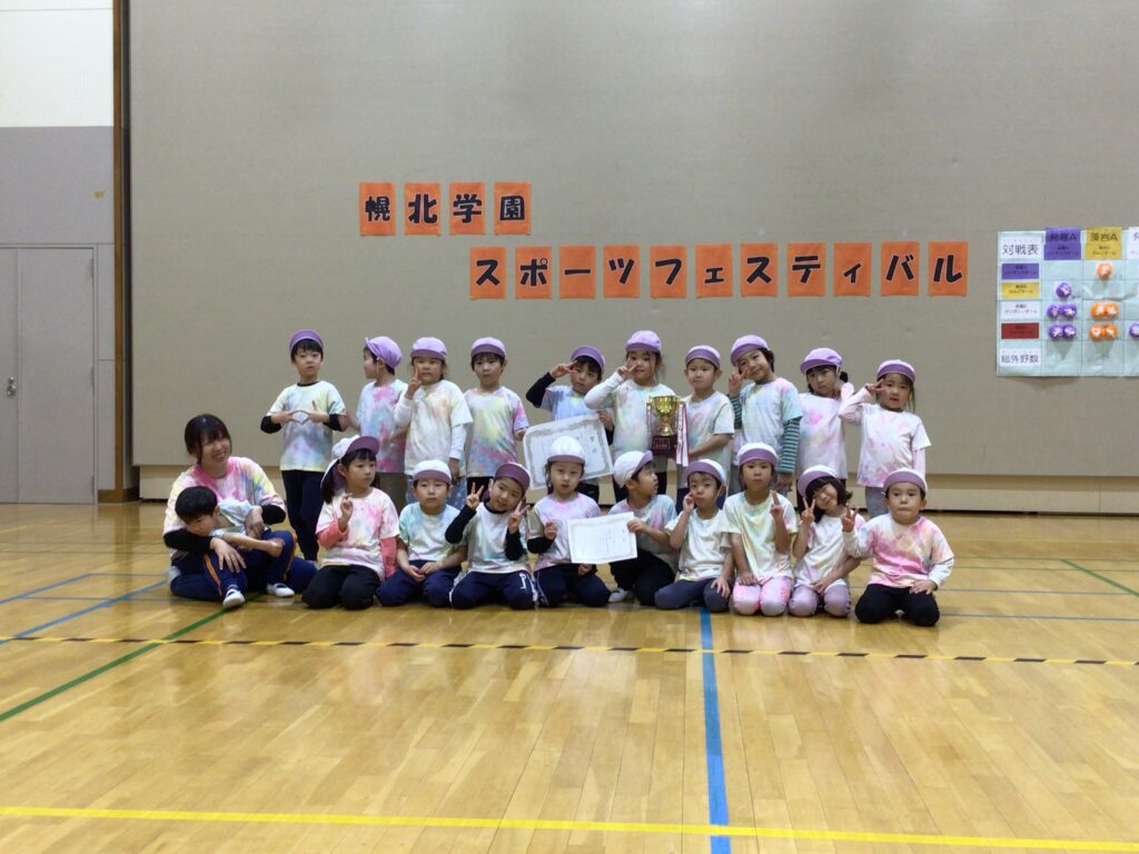 優勝したハイチュウチーム、練習では一度もガリガリくんチームに勝てなかったのですが、本番では力を合わせて大健闘。藻岩チームの豪速球にも負けず、最後まで諦めずに戦う姿はとても頼もしく、子どもたちの大きな成長を感じる一日となりました。 ばら組で過ごす時間も、残りわずか。これから卒園まで、友だちとたくさん笑って、挑戦して、思い出をいっぱい作っていこうね!!