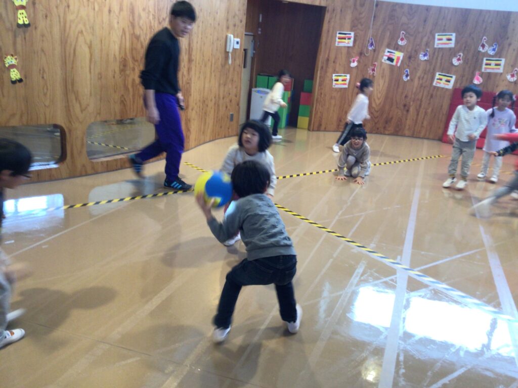 もも組は、ルールの理解も進み、試合はとても白熱!どちらが勝つかわからない、いい勝負がたくさん見られました。昨年と比べると、ボールの投げ方や逃げ方、チームで声を掛け合う姿などから、大きな成長を感じました!!