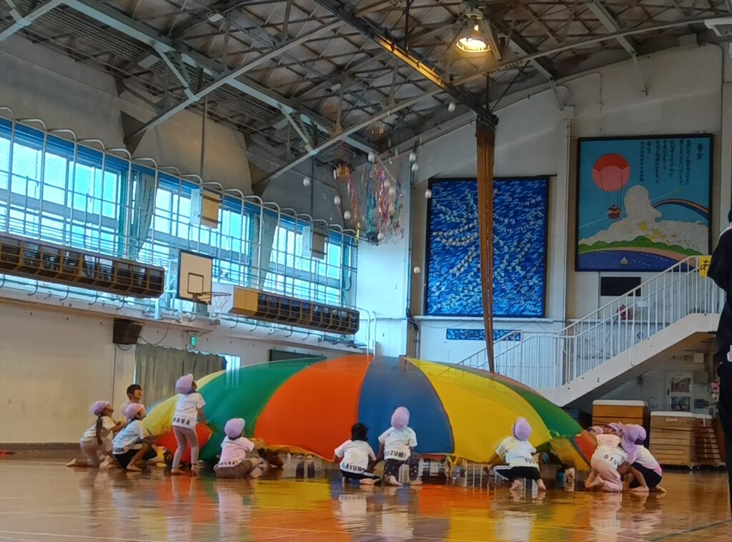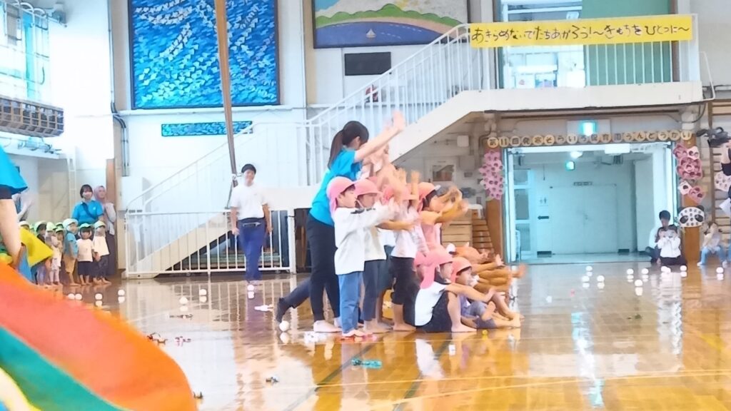 5歳児は5種目(よさこい、バルーン・集団体操、親子競技、合同リレー、リレー)に挑戦しました!