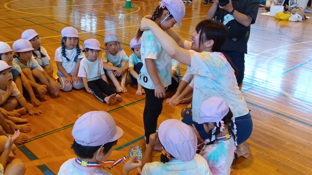 担任から頑張ったねとメダルを貰い、嬉しそうな子どもたちでしたよ☆