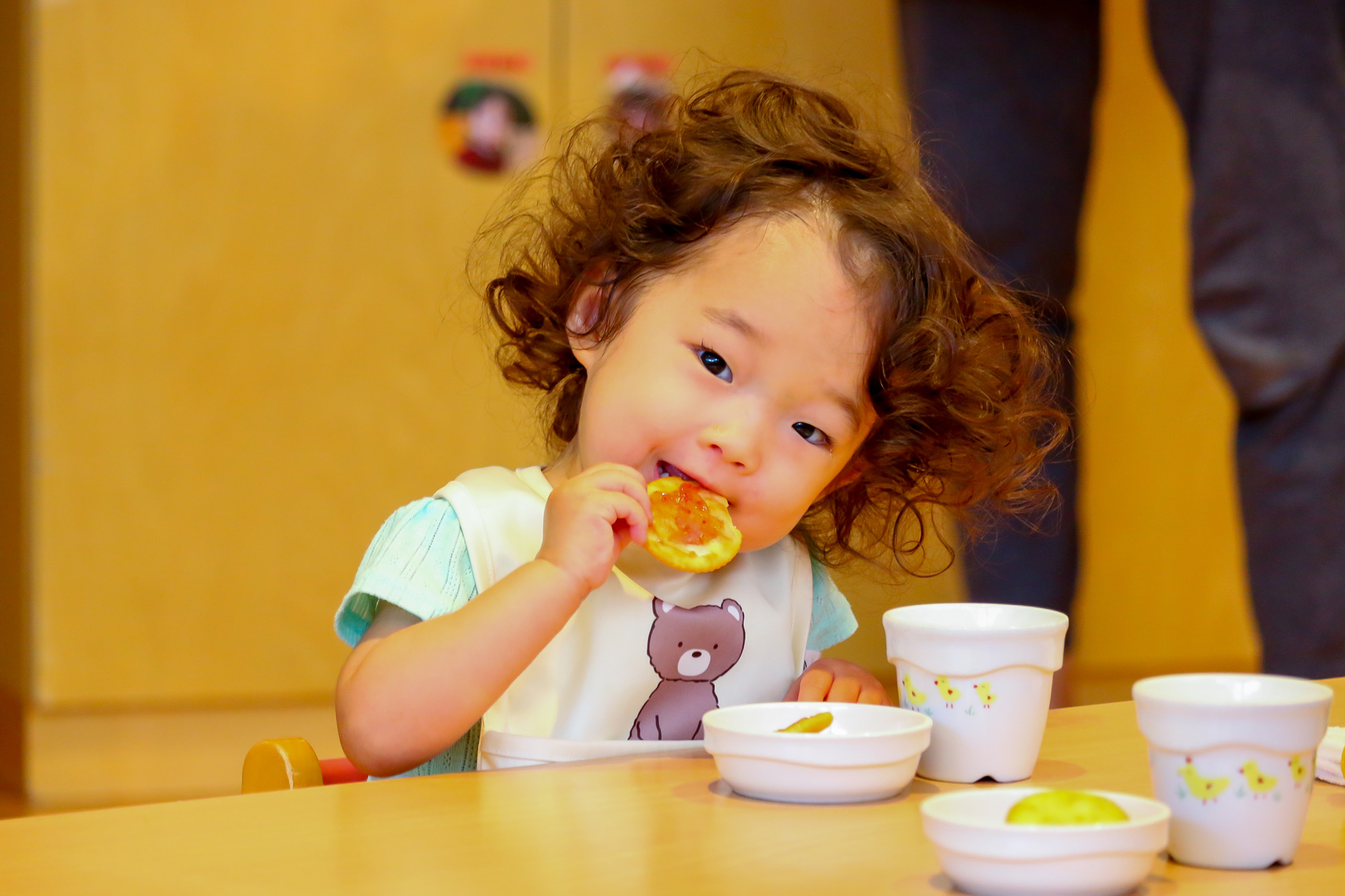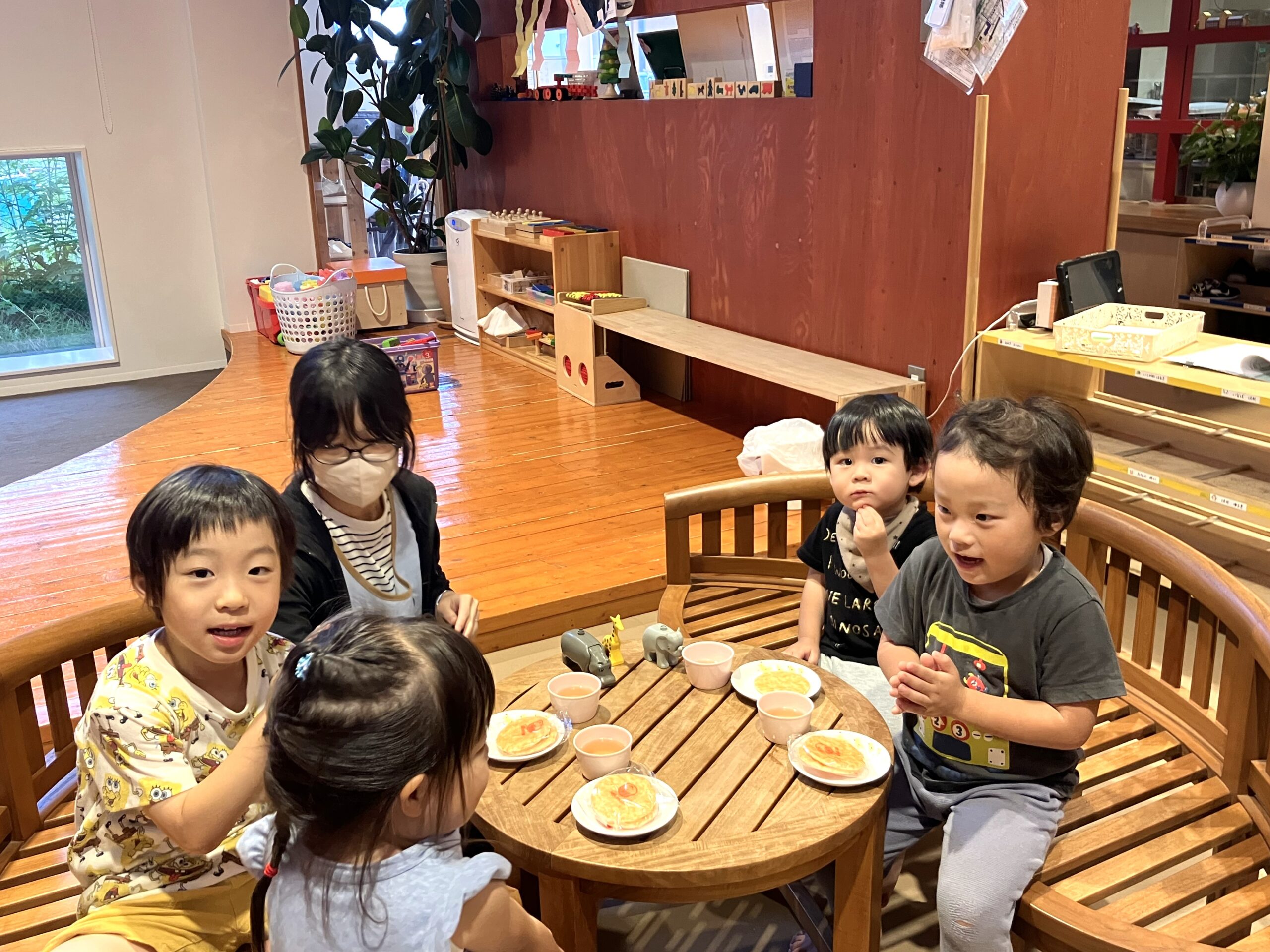 午後のおやつは自園のキッチンで手作りしたおやつ(蒸しパンなど)を基本としています。