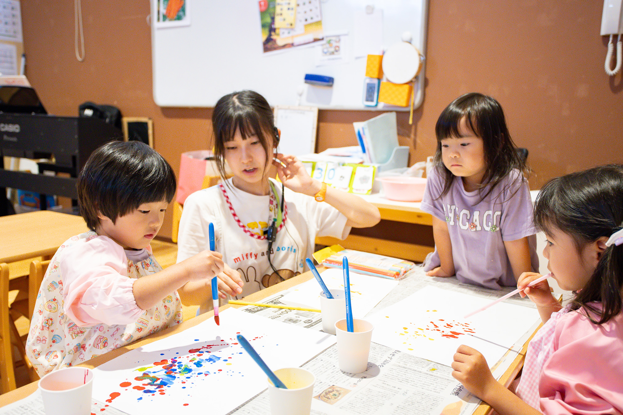 子どもの興味・関心、季節、月、行事など、あらゆる角度から製作や表現など幅広い活動を行います。
