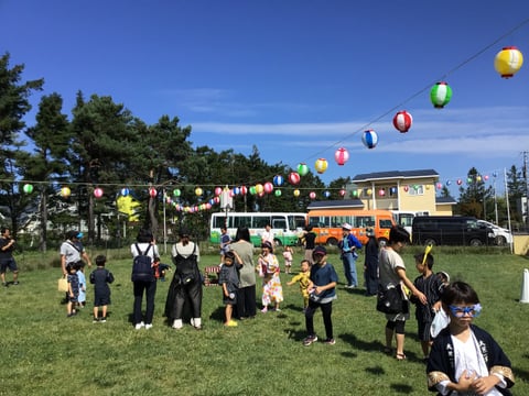 - 夏の夜のひととき、手作りのやぐらを囲んでの盆踊りや夜店をお友だちや保護者の方とともに楽しみます。