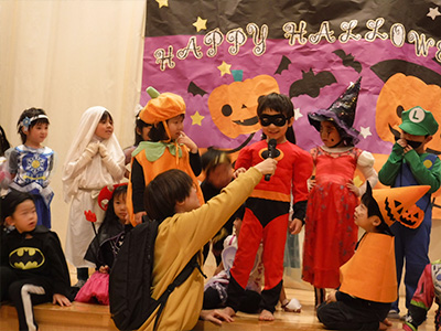 「trick or treat!:お菓子をくれなきゃイタズラするよ!」と唱えながら、子どもたちが 園内外を歩きます。ハロウィンの由来を学び、ジャック・オー・ランタンに火を灯すなど、異文化に触れる一日です。