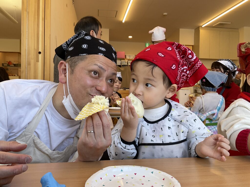 自分で作った蒸しパンを囲んで、親子で会話が弾む楽しい時間となりました。