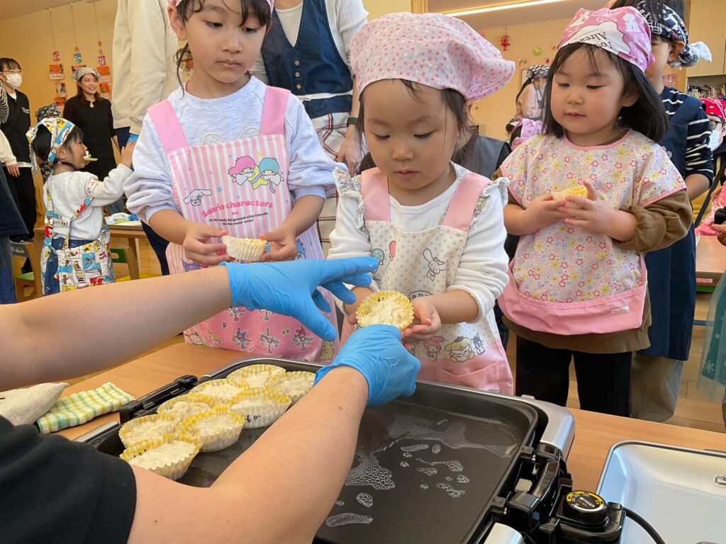という子どもたちの声。出来上がるまでの間、美味しそうな匂いが・・・。