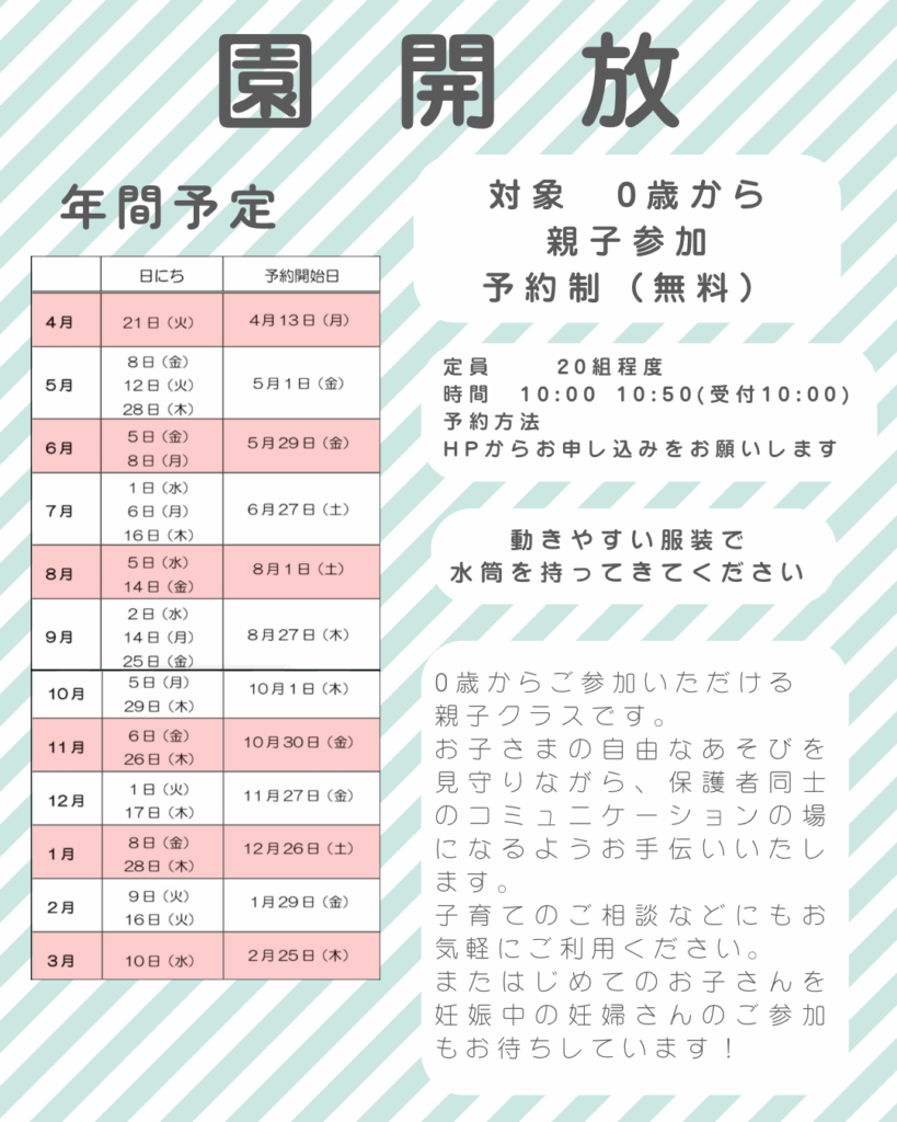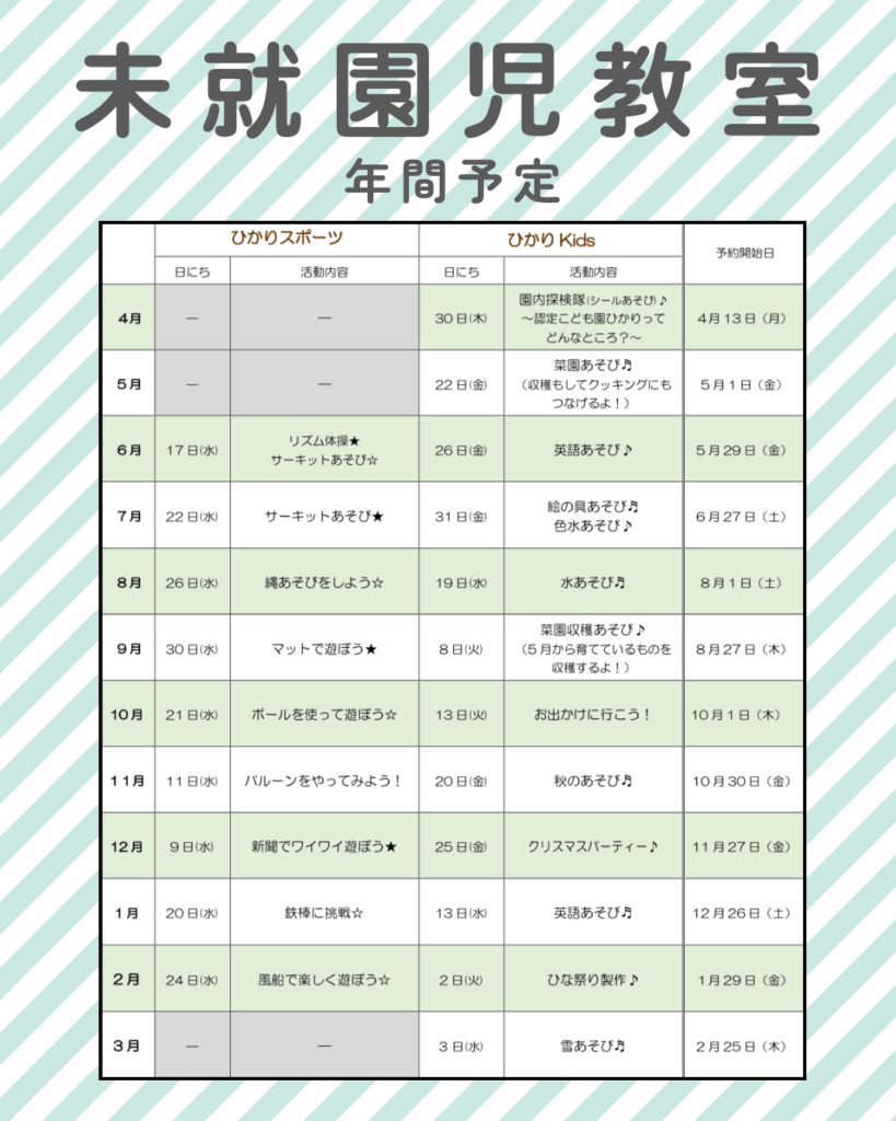 2026年度 未就園児クラス(ひかりKids・ひかりスポーツ)・園開放のご案内です。