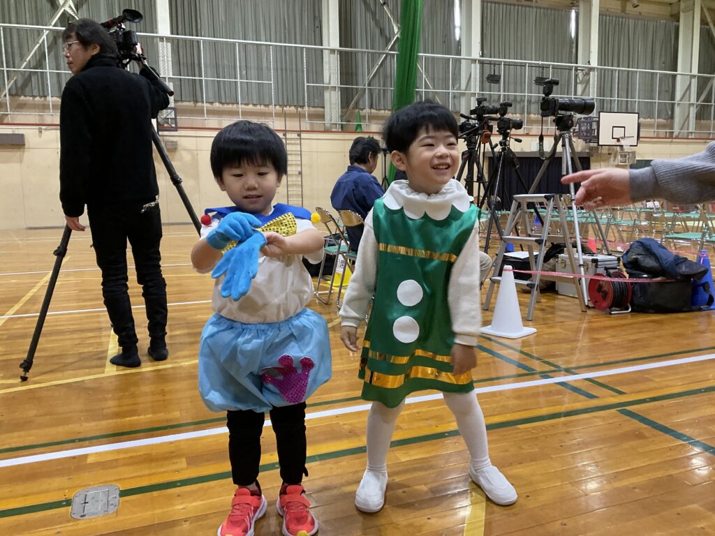 広い会場や体育館全体が暗くなる雰囲気に少しドキドキしたり、今までの練習の成果を発揮しようと元気いっぱい笑顔で登園するお友だちなど、それぞれの気持ちを胸に参加する姿が見られました。