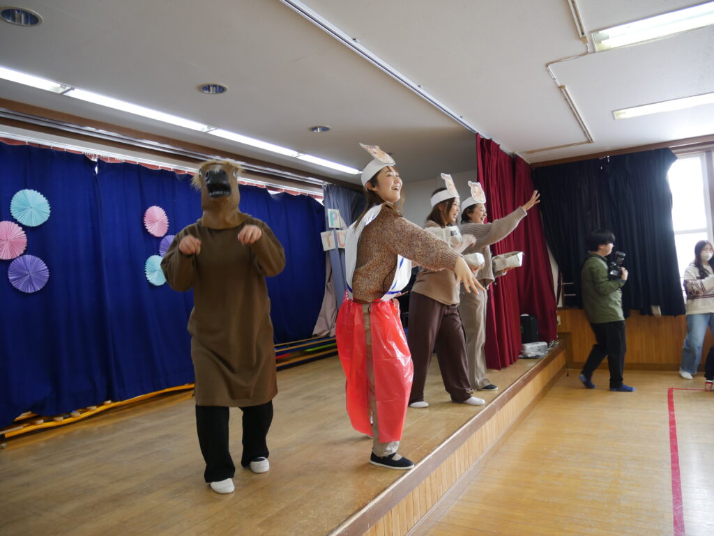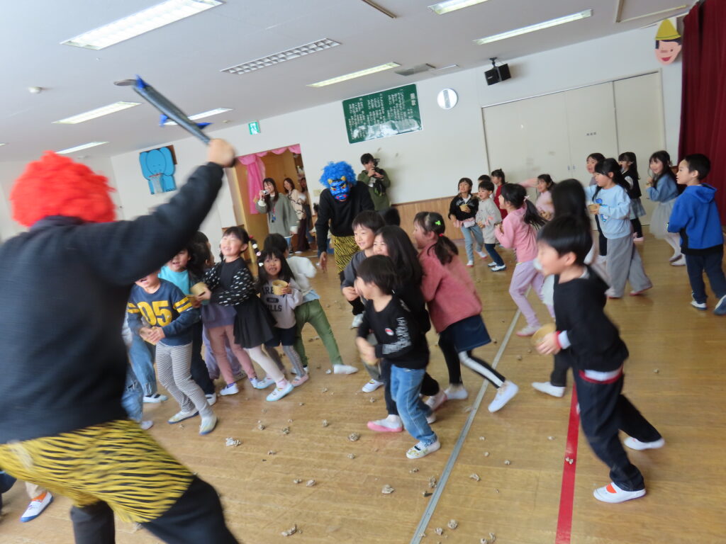 まずは節分の由来を先生たちの劇を見て学びました。
