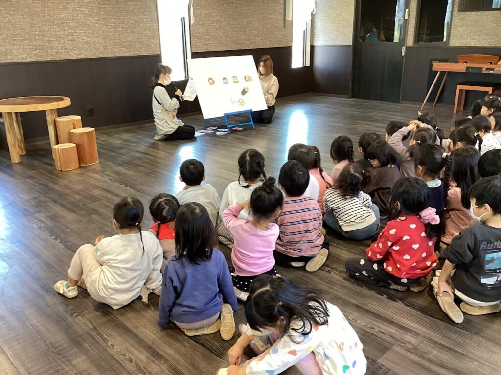 まずはみんな節分のお話を聞きにホールに集合しました。