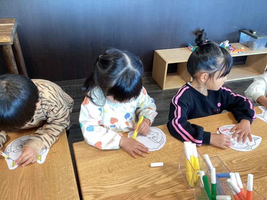 幼児クラスは、まずおめん作りに取り掛かります。