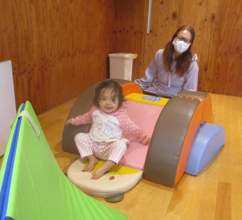 保育者に人見知りして緊張していたお子さんも、遊んでいるうちに可愛い笑顔を見せてくれました💕