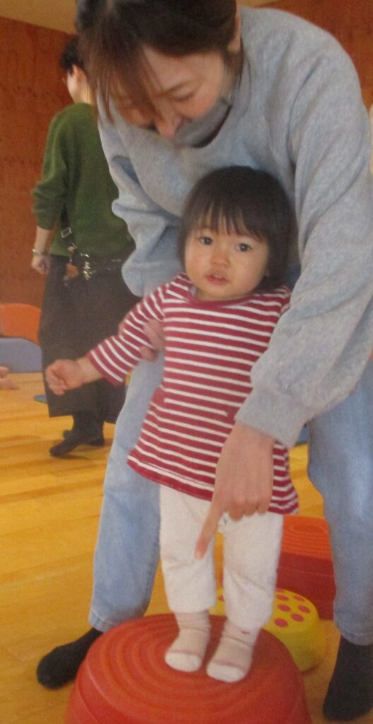高いところに登りたいこの時期、保護者の方と一緒にウェイブバランスに挑戦です✨