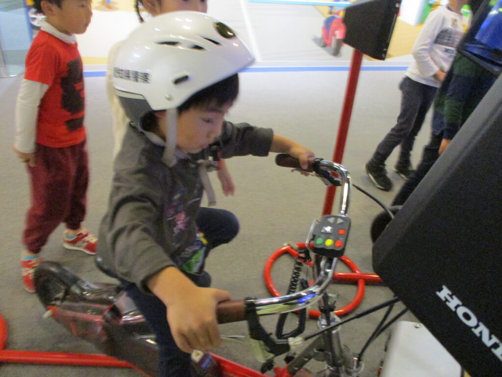 自転車の交通ルールを学ぶところでは、実際に自転車に乗り