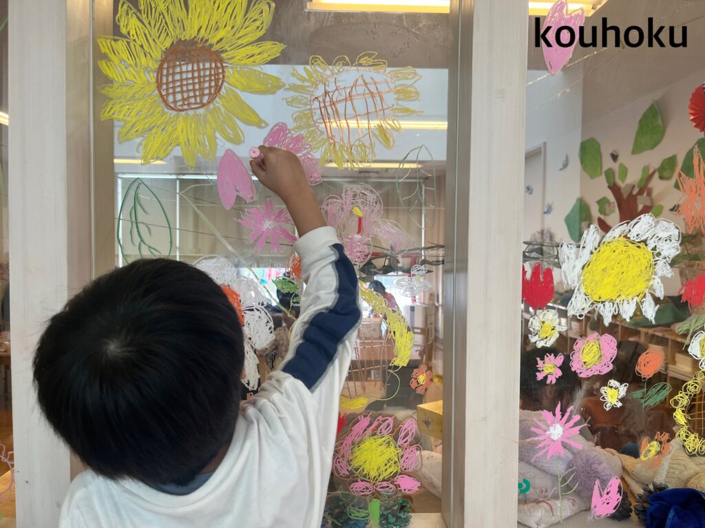 キットパスを使って、大きな花束の装飾に挑戦しています!