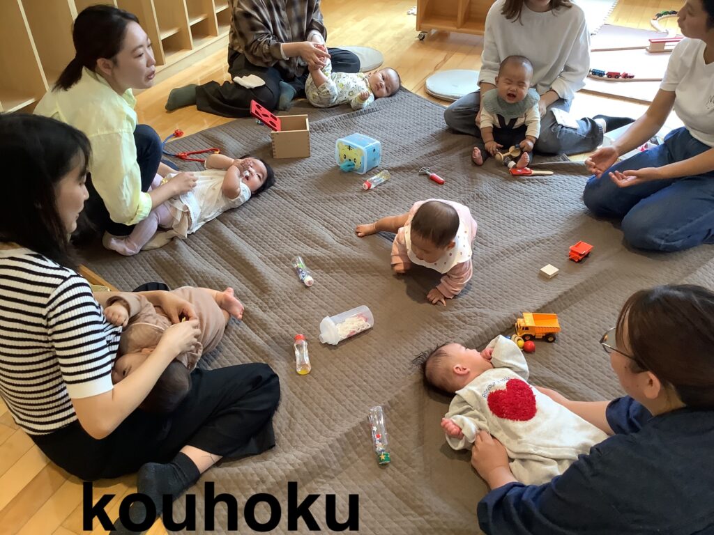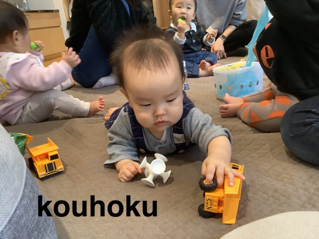 初めは少し緊張していた子どもたちも、慣れてくると、好きなおもちゃに手を伸ばしたり、ハイハイで探索したりとそれぞれのペースであそぶ姿が♪