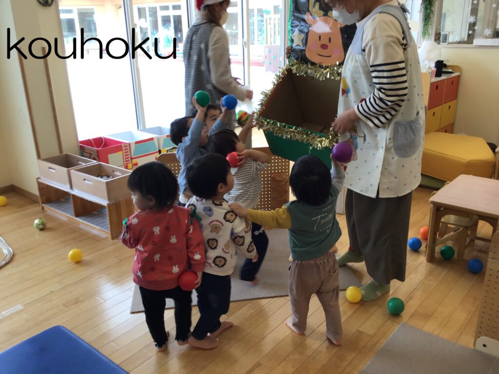 今日はクリスマス会がありました。朝から「クリスマス会あるんでしょ?」「たのしみ~!」とワクワクしていた子どもたち。前日にはみんなでクリスマスツリーに飾り付けをしましたよ♩
