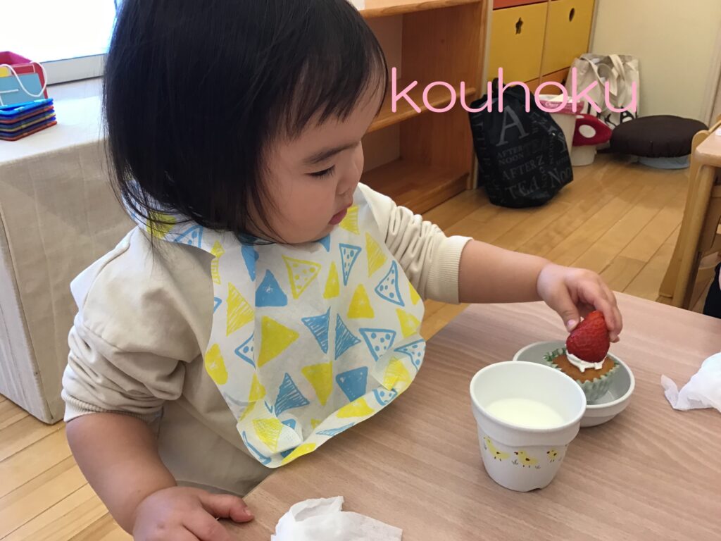 午後はいちごカップケーキを食べたよ!おいしかったね♡