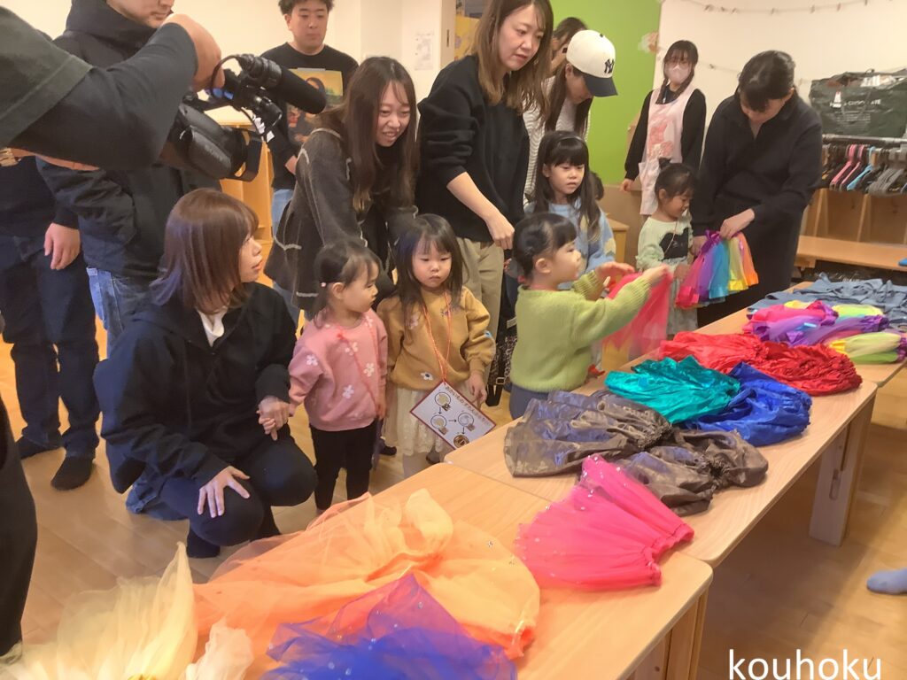 目の前に並んだステキな衣装に目がキラキラな子どもたち。このほかに帽子屋さん、アクセリー屋さんもありました。