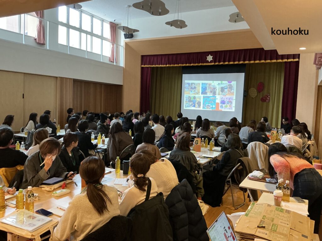 全国から集まった園長先生や主任の先生方、保育に携わる方々、姉妹園の先生、保護者さま、そしてこうほく職員など総勢90名をお迎えしての一日。