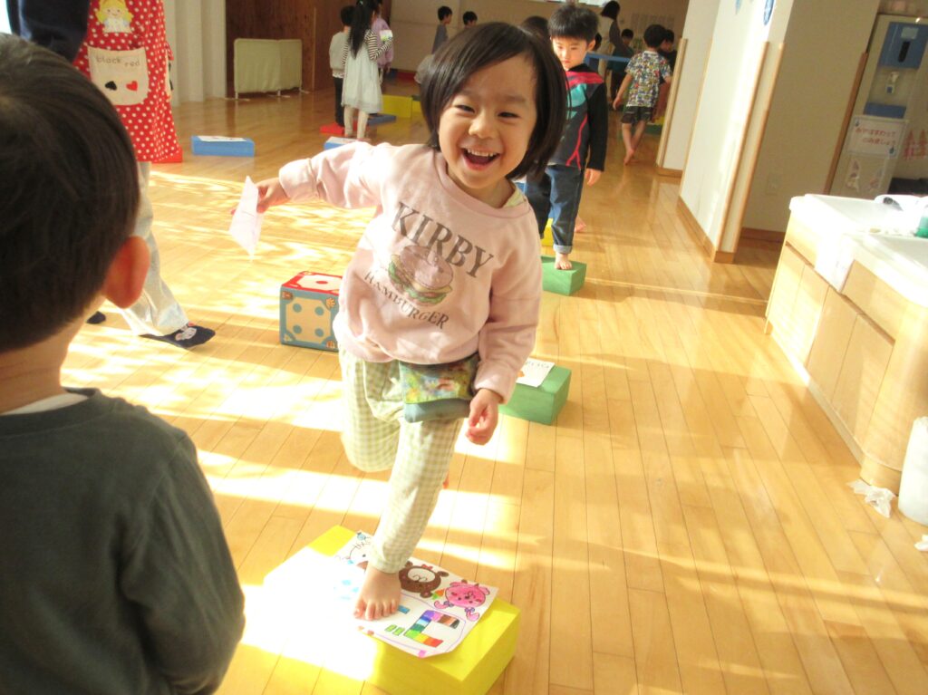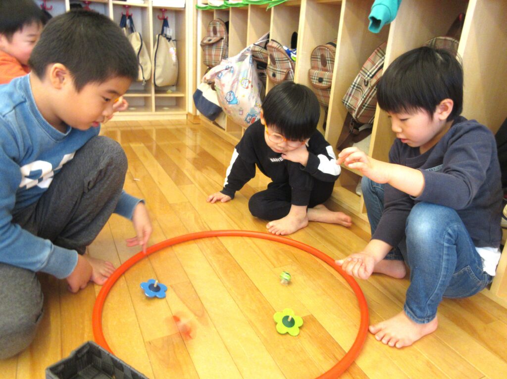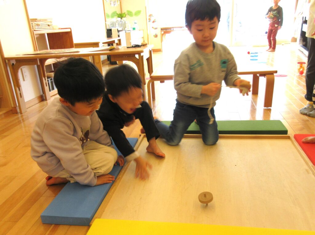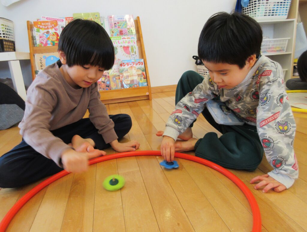 こまが上手く回せたときに友だちと大喜びしていました♪
