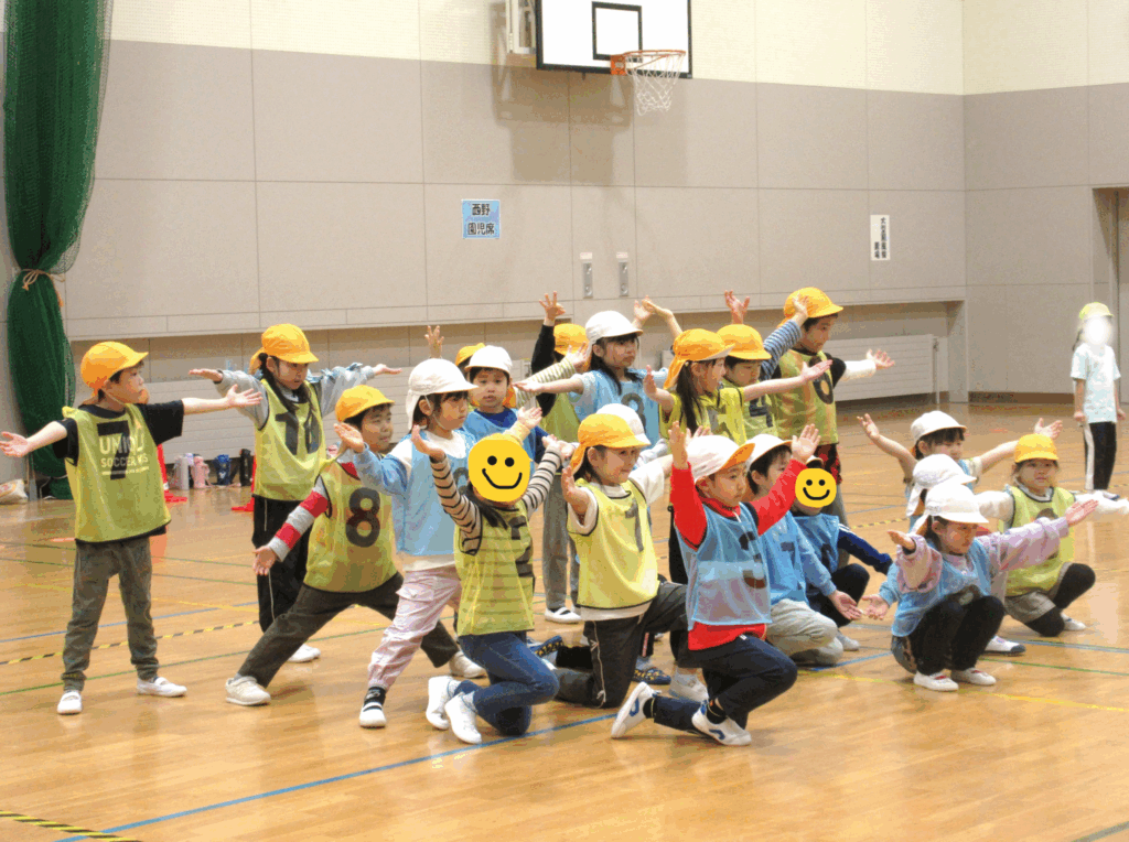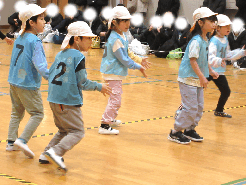 開会式では、年中組の時からダンス遊びで練習してきた