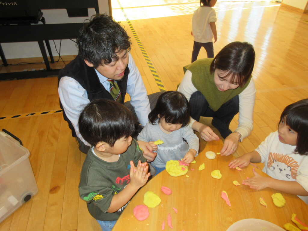 小麦粉粘土を作っていく過程を親子で見て楽しむだけではなく、