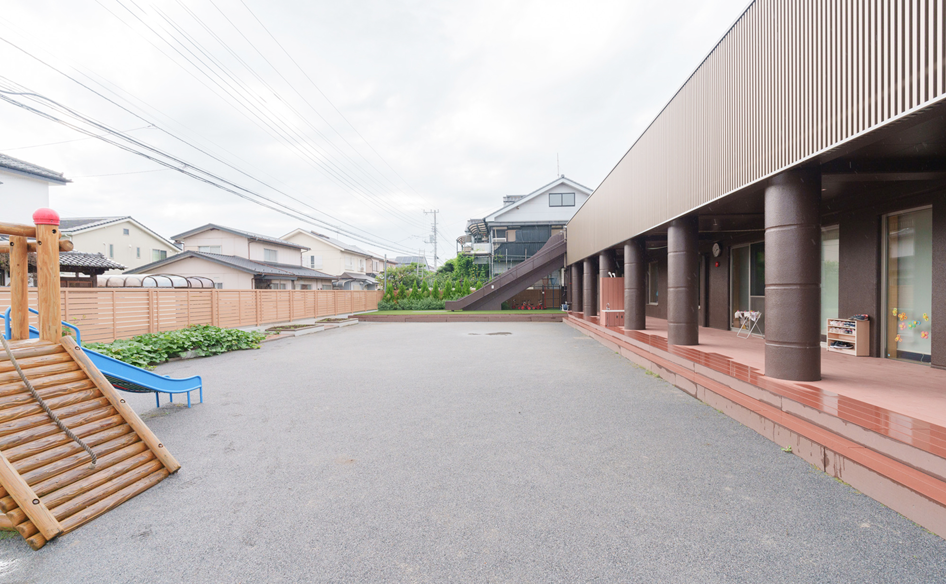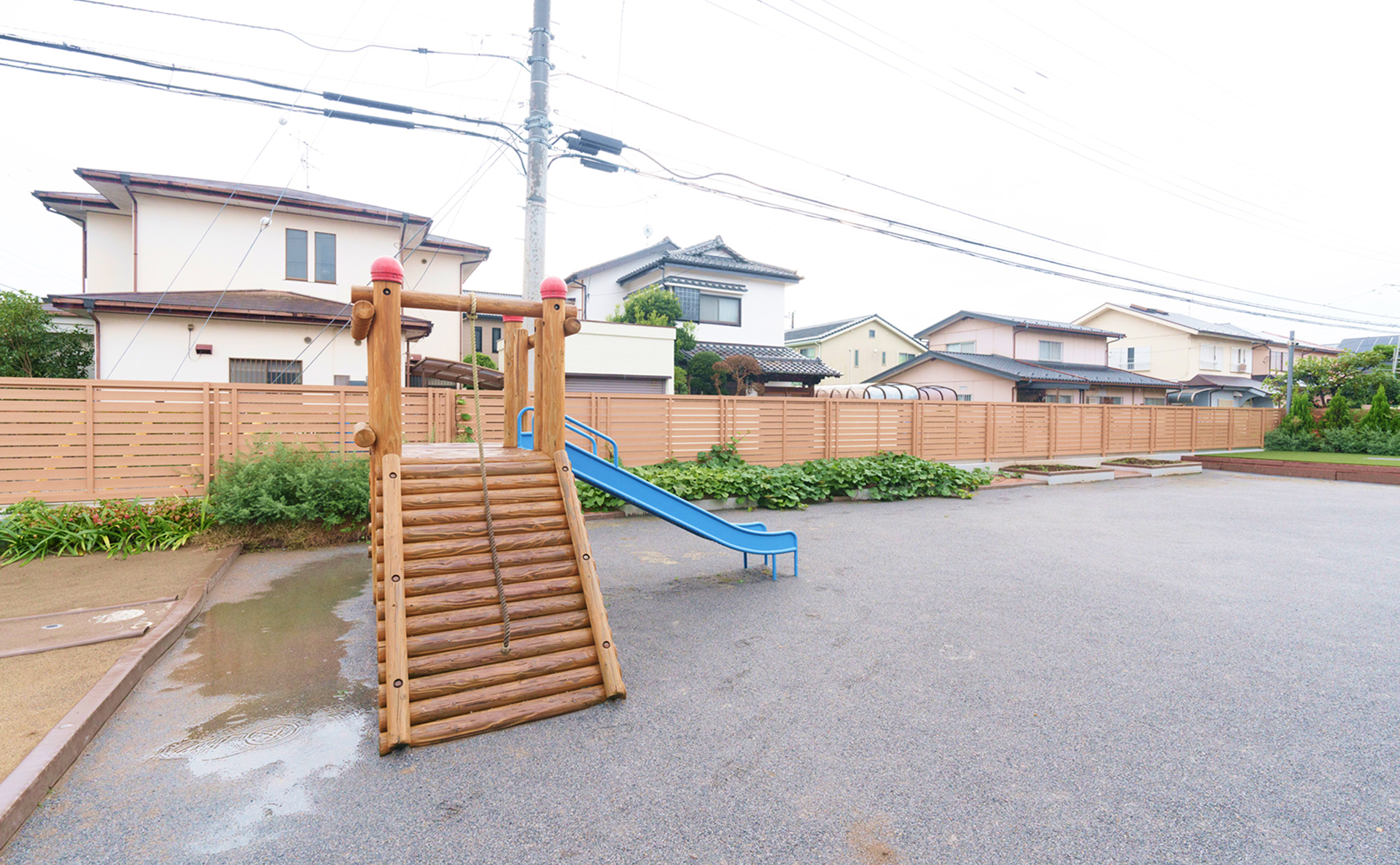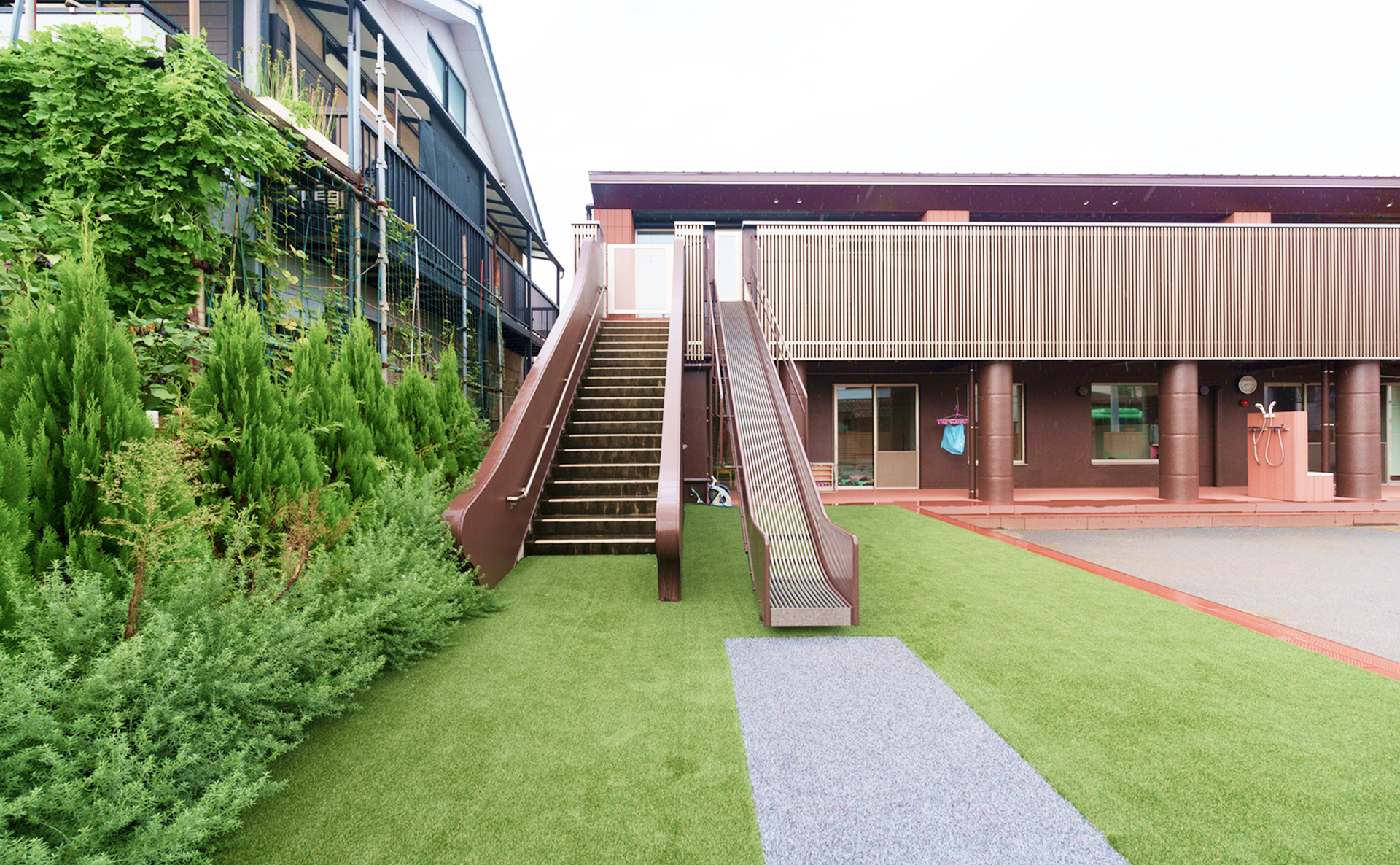 少し低い滑り台で主に乳児クラスの子向けですが、ロープ登りもついているので幼児クラスの子どもたちが力いっぱい登る姿もみられます。