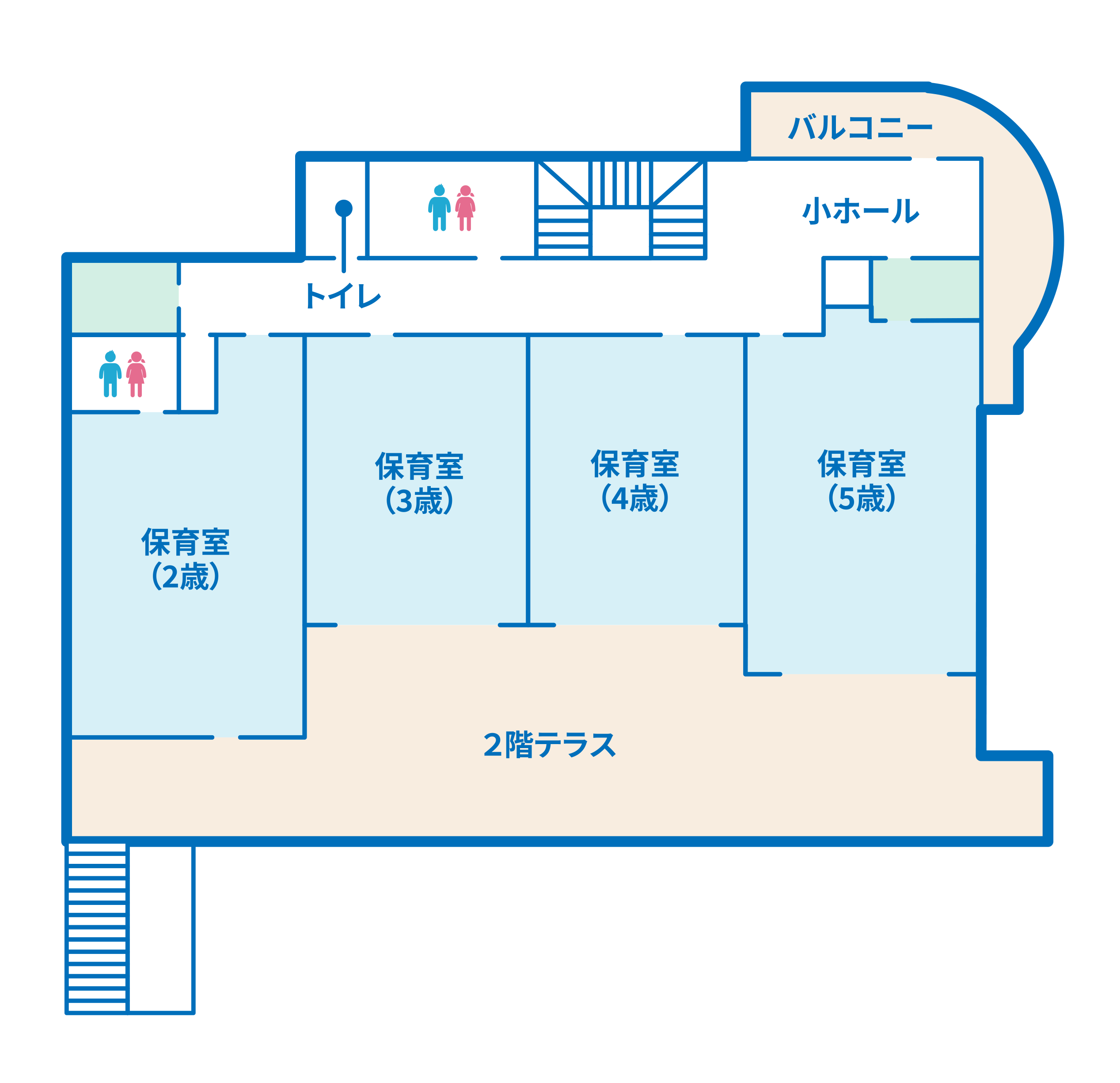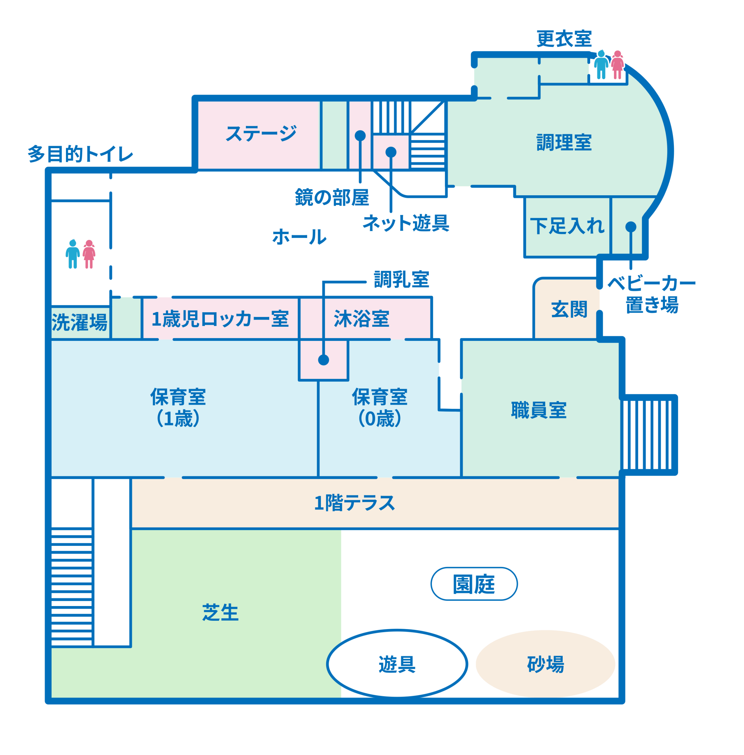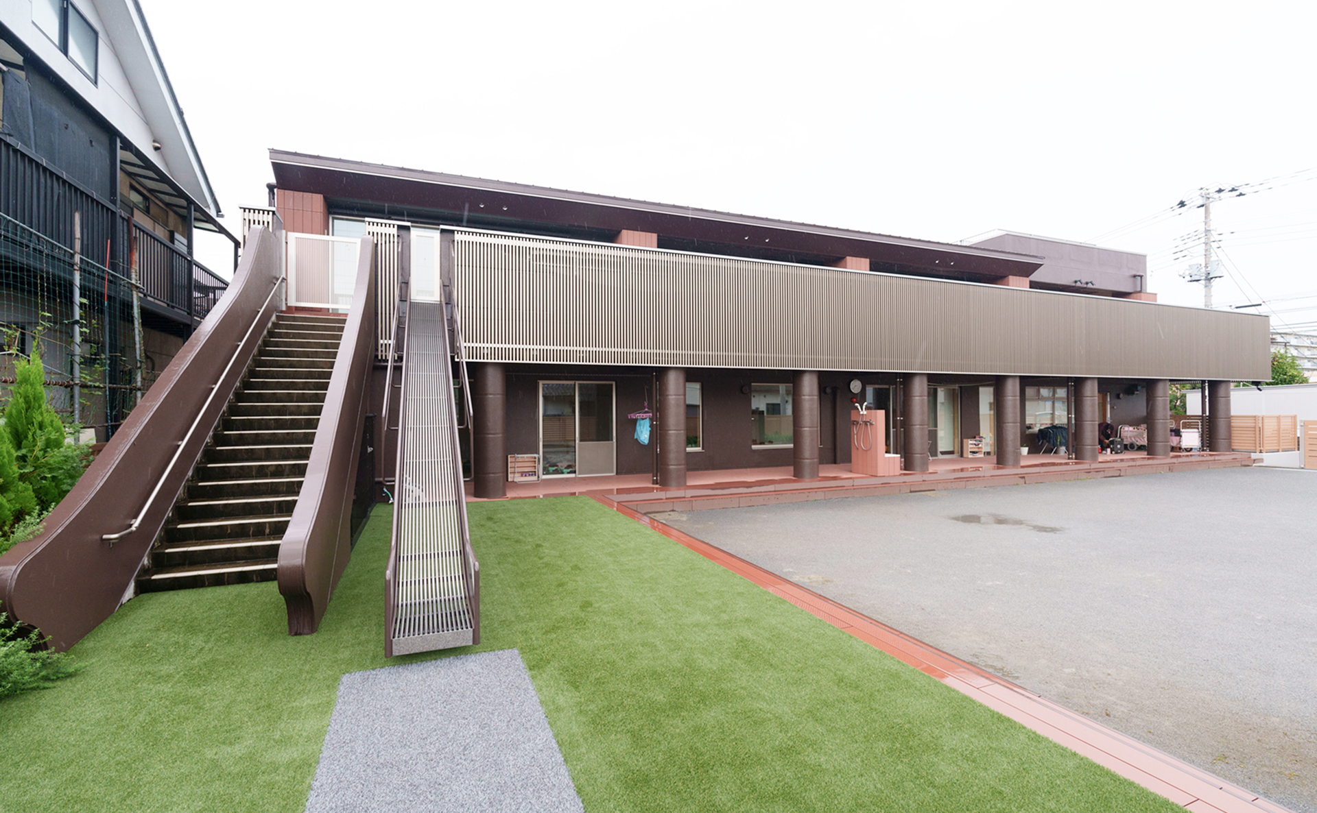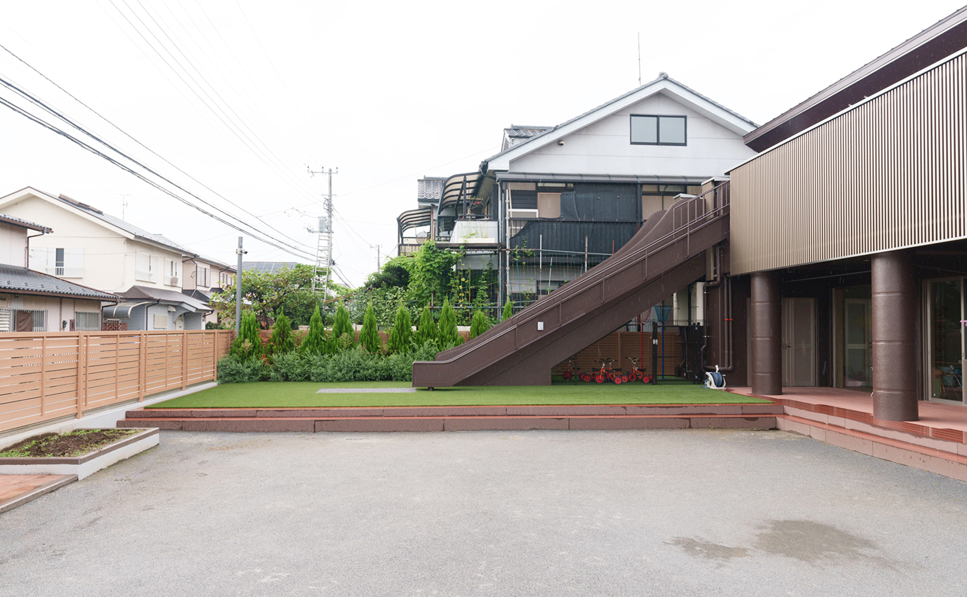 少し低い滑り台で主に乳児クラスの子向けですが、ロープ登りもついているので幼児クラスの子どもたちが力いっぱい登る姿もみられます。