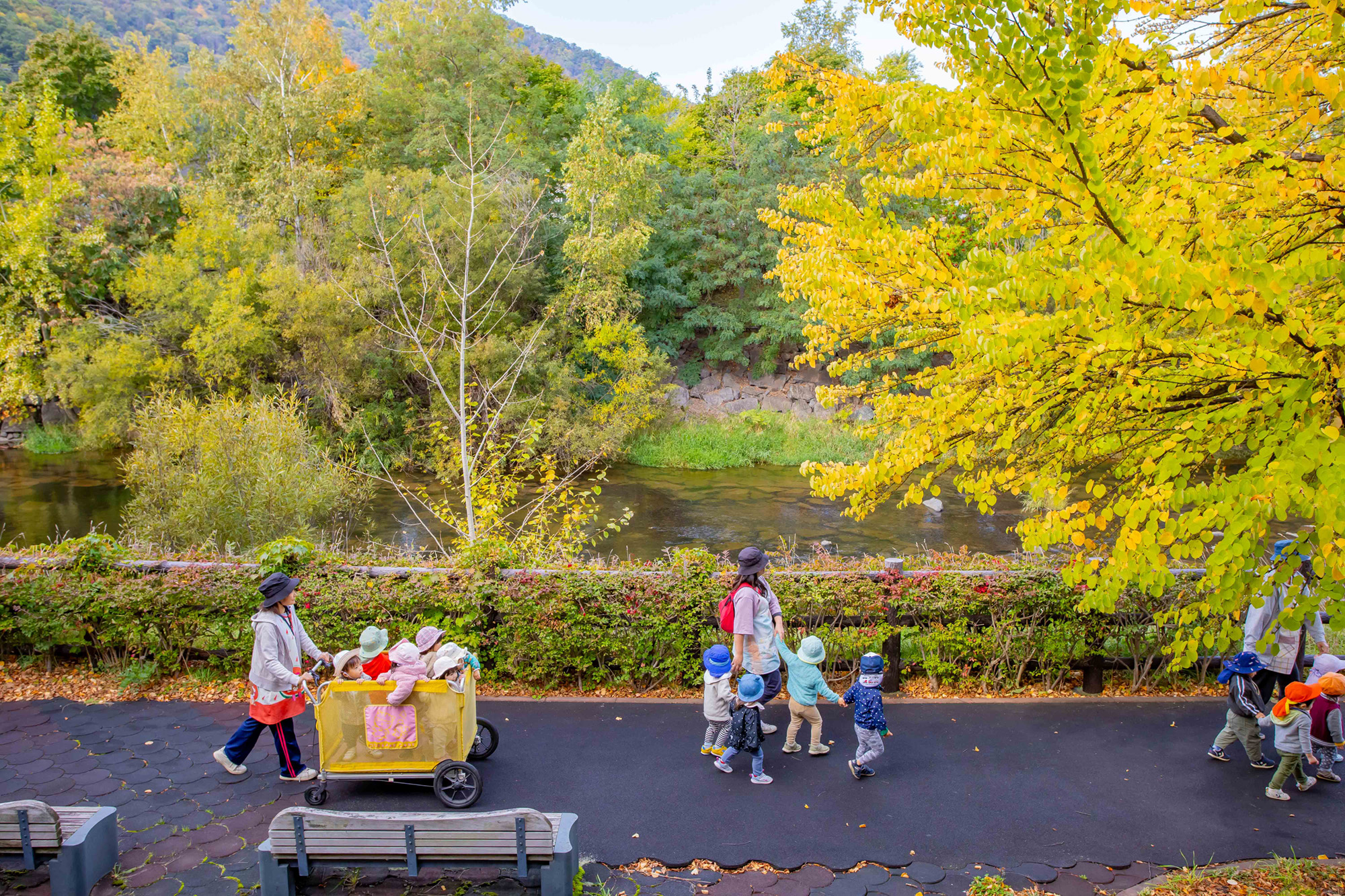 • 子ども達の興味関心、成長や発達に合わせた活動を行います。五感を刺激する室内あそびのほか、近隣の公園へのお散歩や園庭などで自然あそびを多く取り入れています。