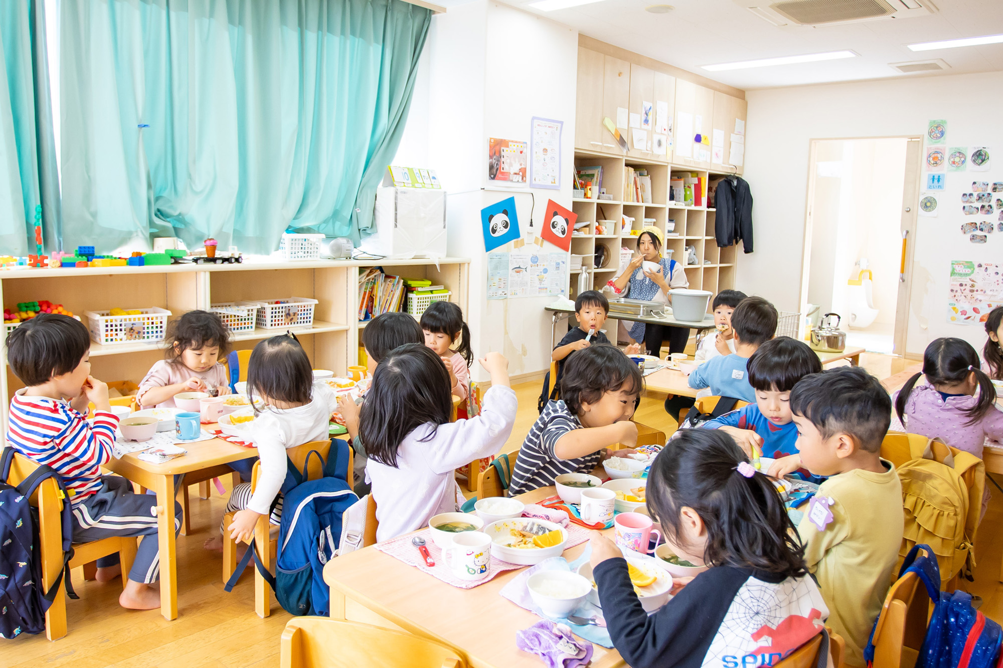 • 1日の活動とバランスをとりながら過ごします。延長保育ではおやつとお茶を提供しています。