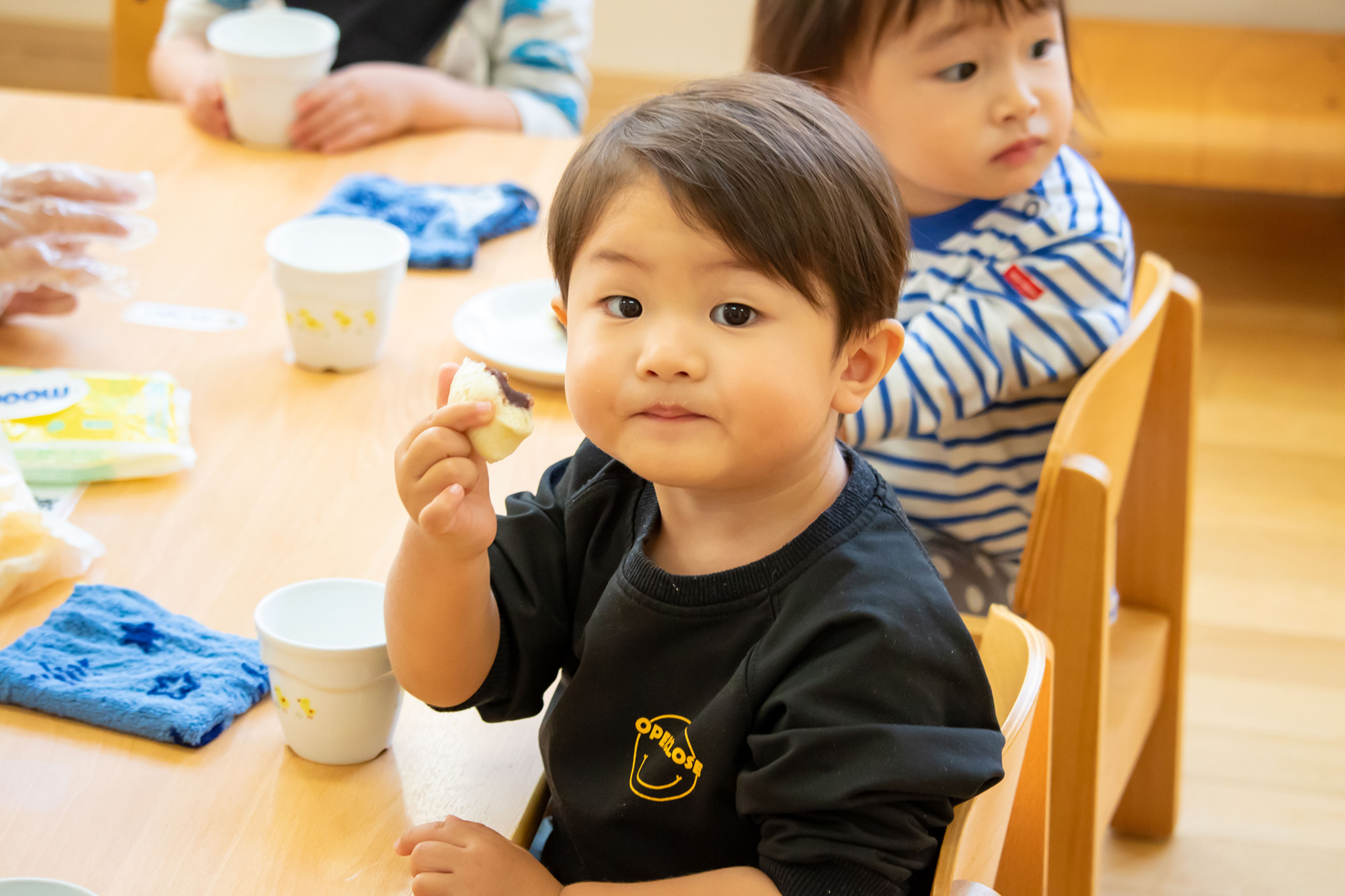 • 午後のおやつは自園のキッチンで手作りしたおやつ(蒸しパンなど)を基本としています。