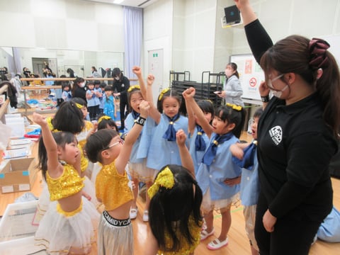 2歳児の子どもたちが、「チャレンジ」をコンセプトに、歌や踊りを発表します。素敵な姿を褒めてもらい、自信につながっていくよう、お友だちや先生と心をひとつに頑張ります。