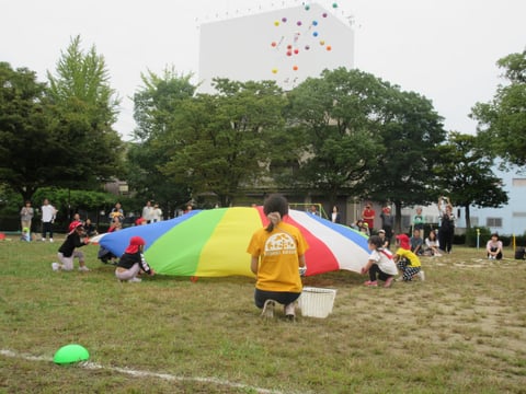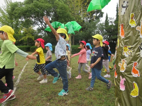 2歳児の子どもたちが保護者の方と一緒に親子競技を行います。