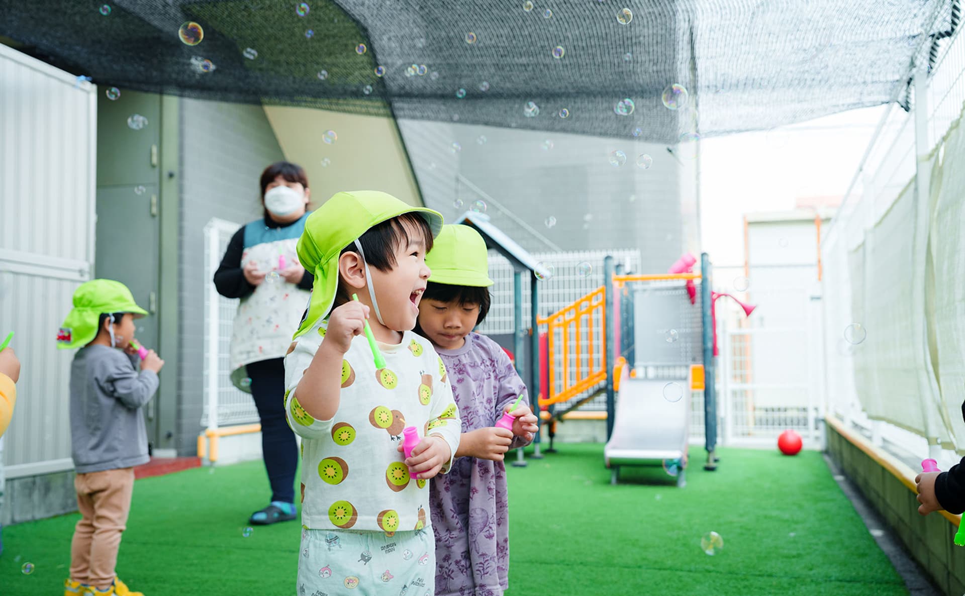 - ②安心してあそべる園庭