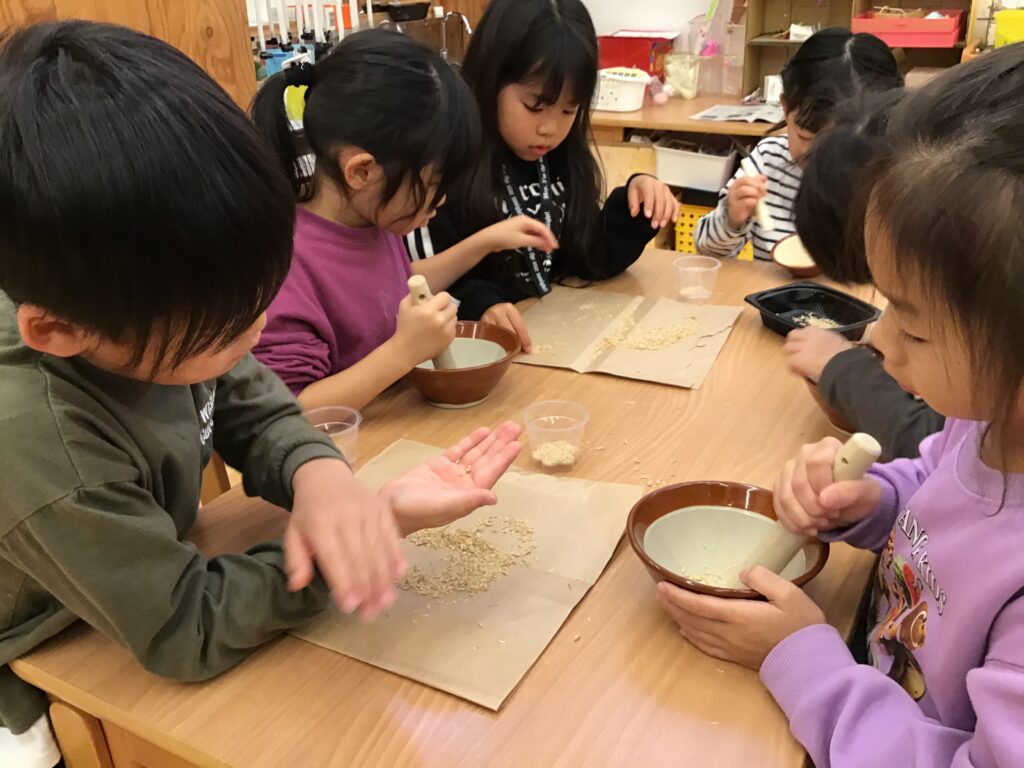 小さなすり鉢と大きなすり鉢でゴリゴリ