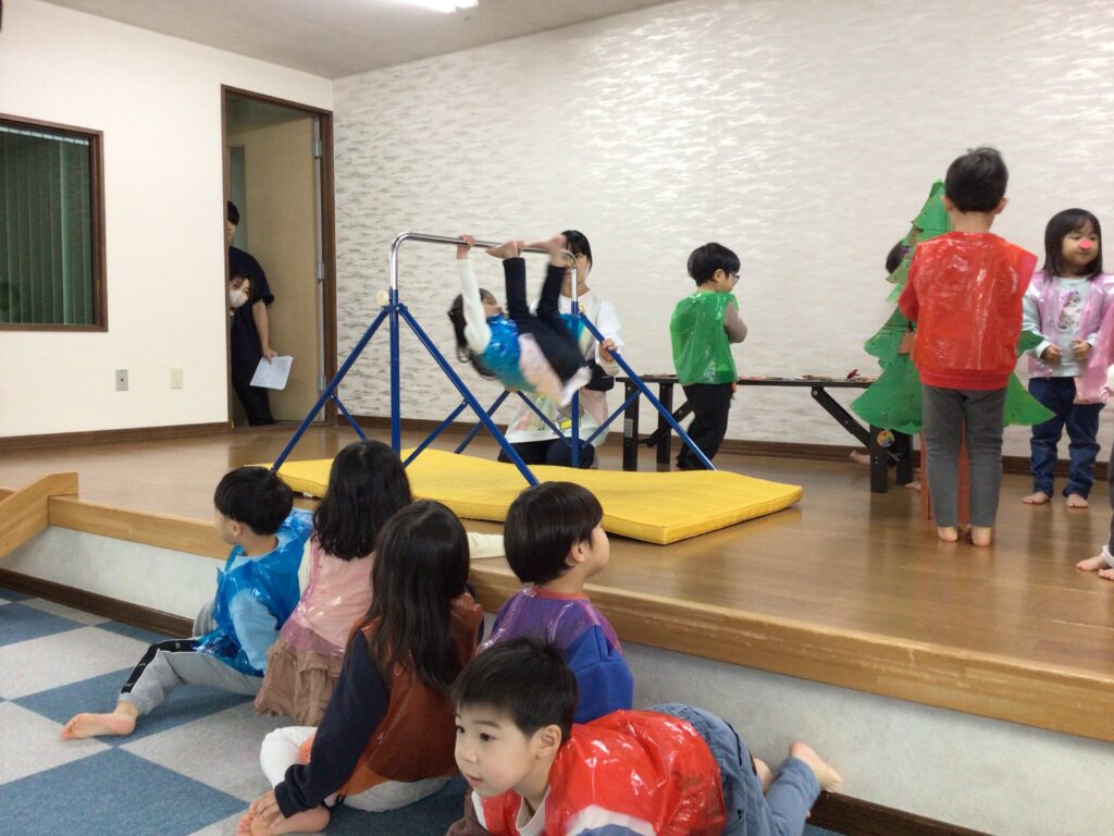 どうぶつサーカスおさるさん役は鉄棒を