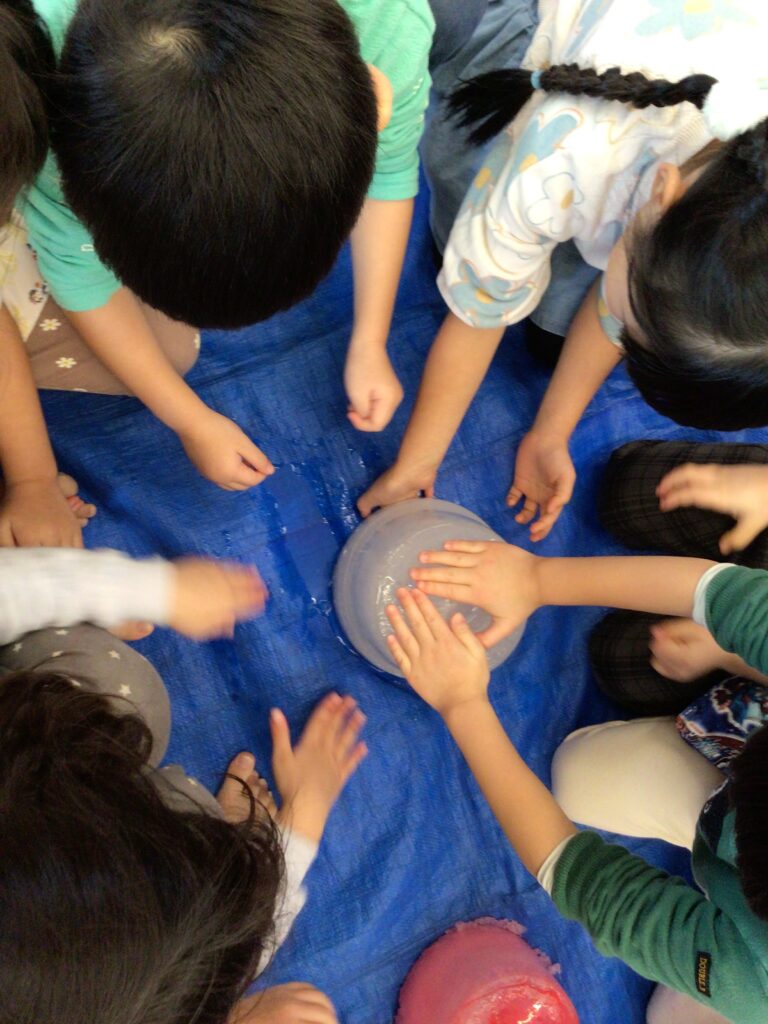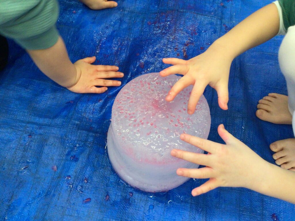 氷をみんなで観察し、感触あそび。