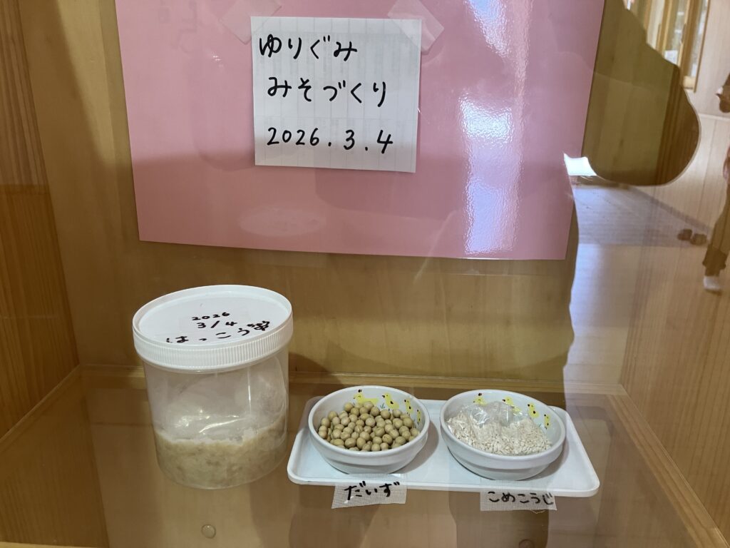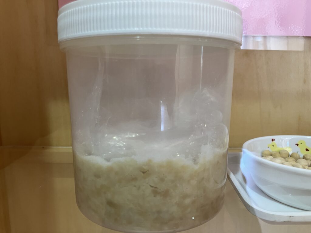 登降園の際に保護者の皆様と一緒に味噌がどのように変化していくのかを観察していただけます。
