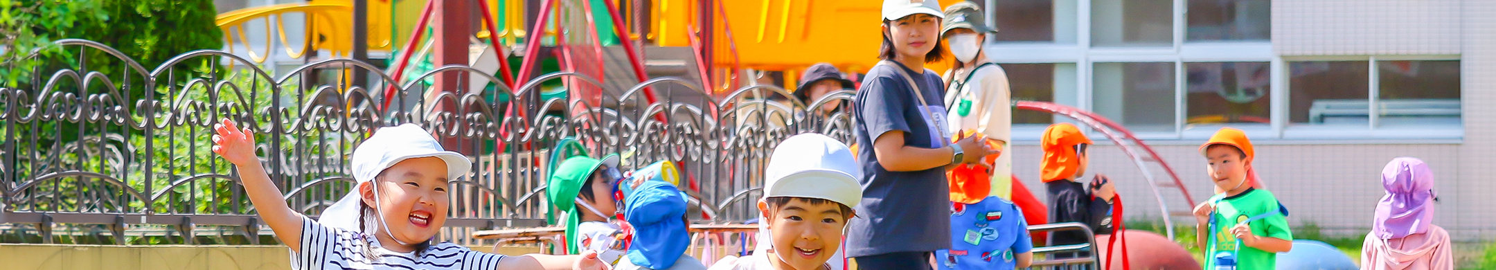 子ども達の興味関心、成長や発達に合わせた活動を行います。五感を刺激する室内あそびのほか、近隣の公園へのお散歩や園庭などで自然あそびを多く取り入れています。